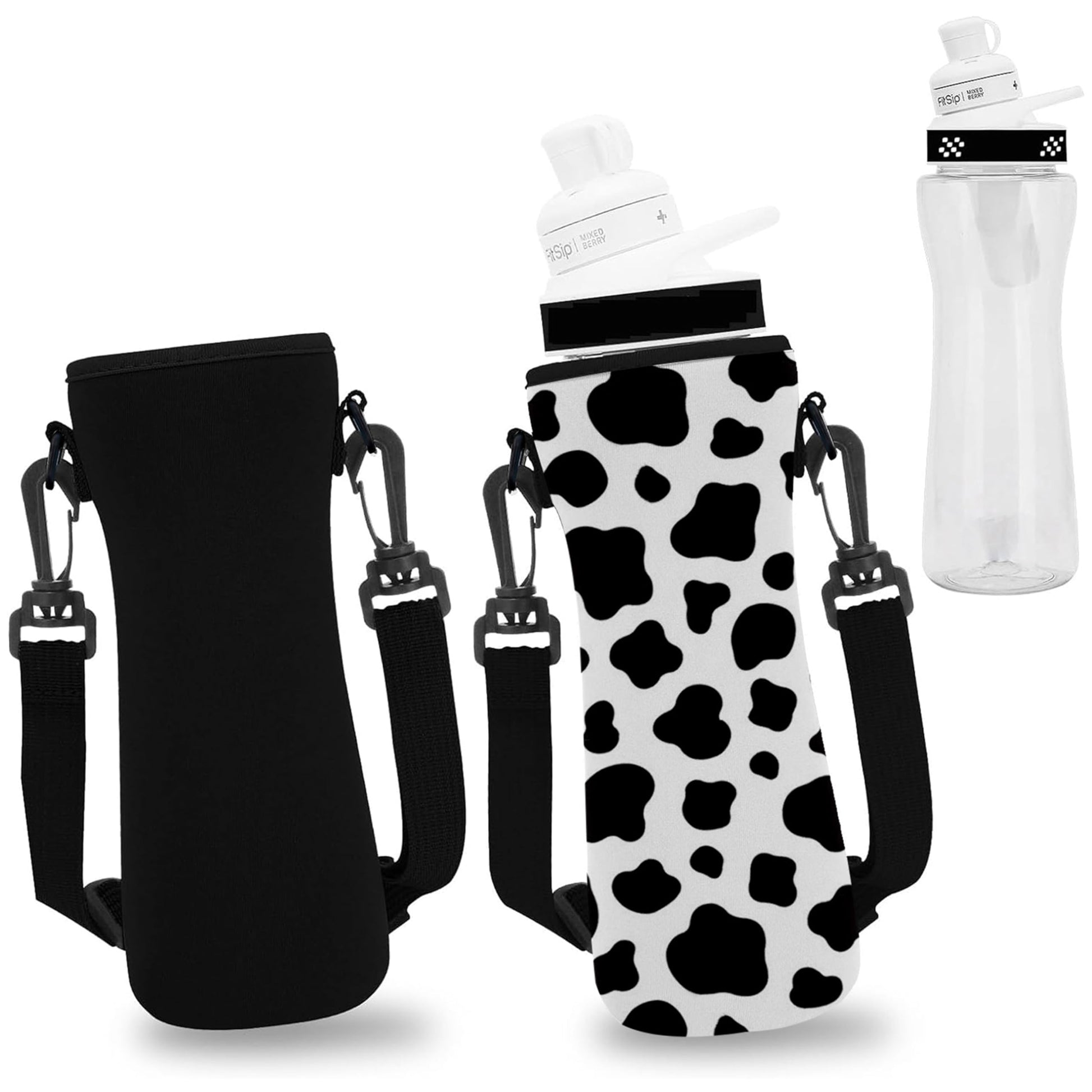 Details: 2Pcs Sleeve Fit for 32 oz Cirkul Water Bottle with Shoulder Strap (Cow and Black)