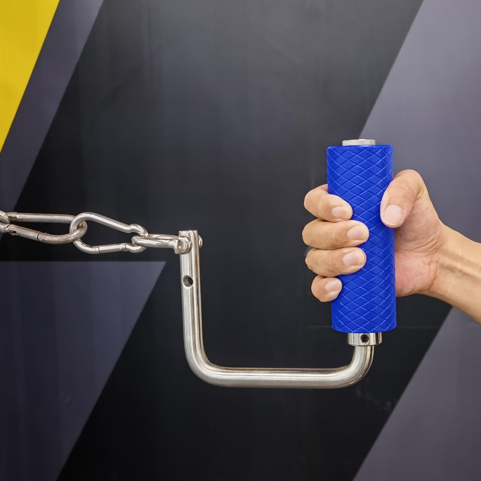 - Solid Build; Handle attachments are made from high-density solid nylon and fine knurl prevent your hands from slipping. The base handle is made of 5/8" 304 stainless steel, with a 600 lbs weight capacity. It comes with two holes for snap links, the carabiner can be moved to two different positions to target different fingers.