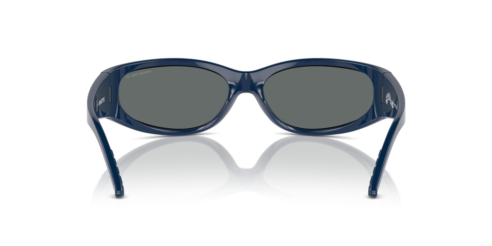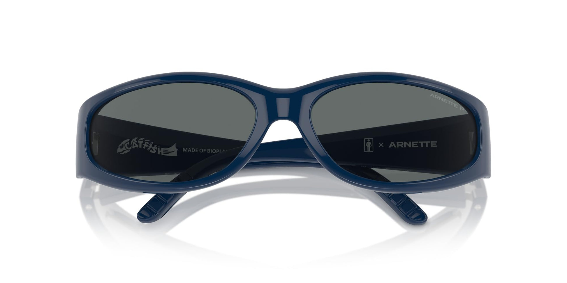 - FRAME FEATURES: AN4302 Catfish sunglasses feature a rectangular, bluette bio-based nylon frame with polarized dark grey lenses. They feature the GSB x Arnette logo on the left temple and GSB logo on the right temple.