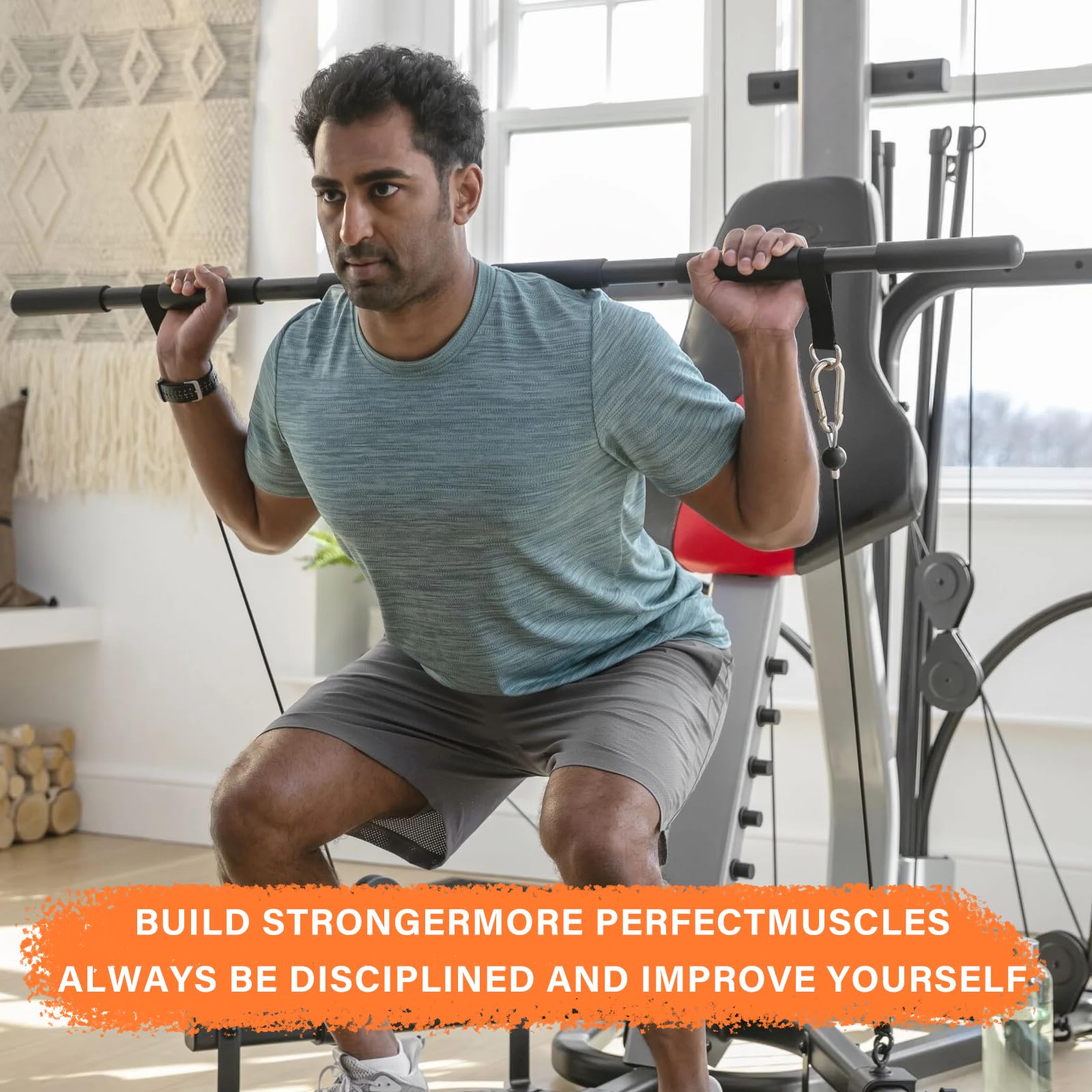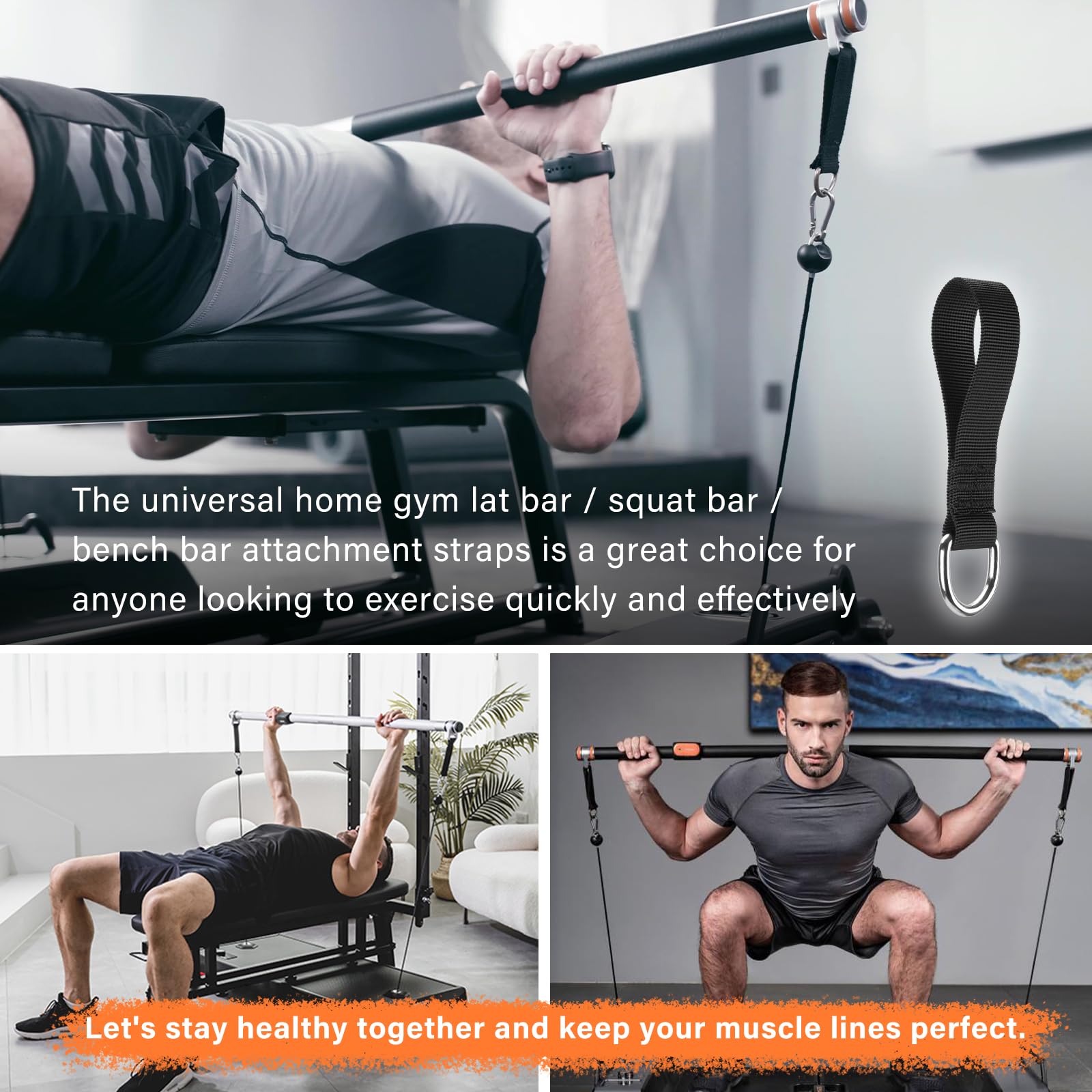 - Build Perfect Body Line-Lat bar attachment straps is designed for exercise the shoulders, back, triceps, biceps, upper body strength muscle training. Integrate Squat Bar straps attachments into your home gym and start with your V-shape body.