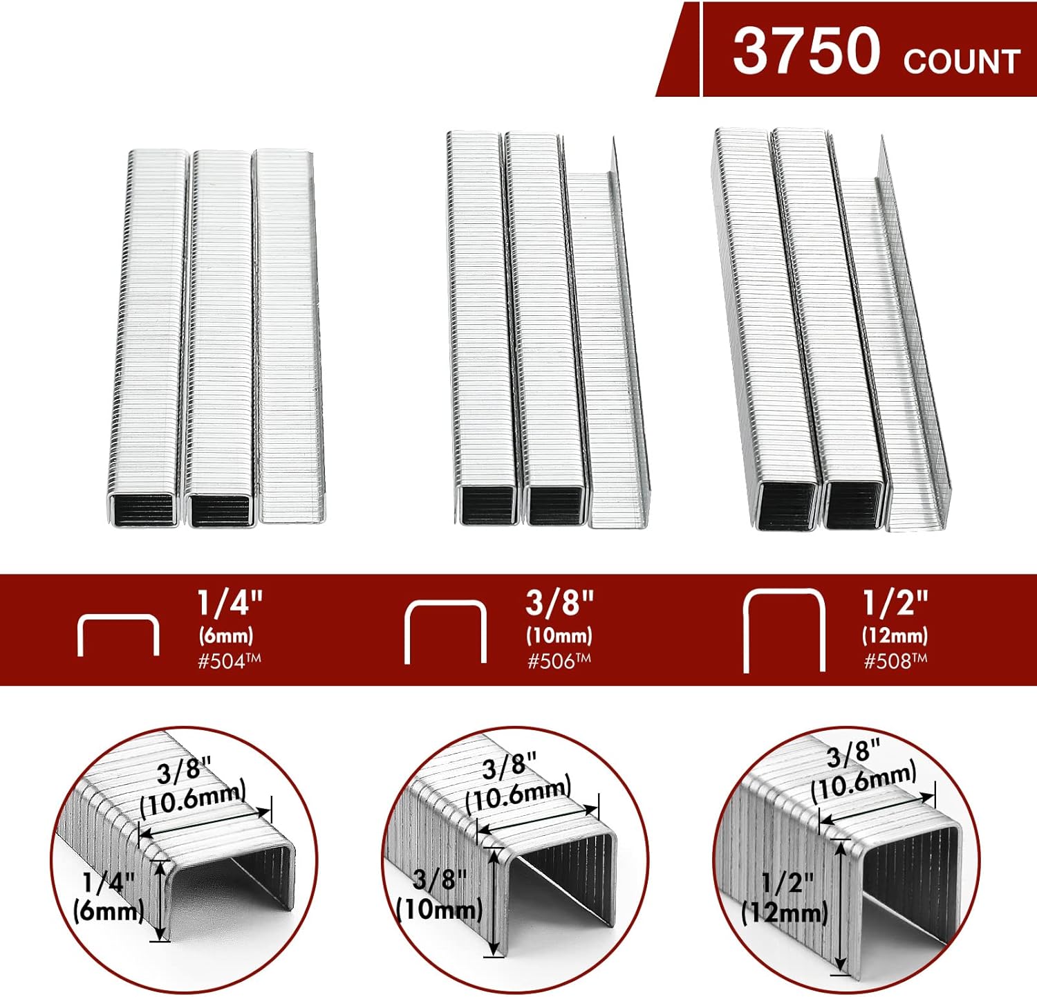 - Come with 3750 Pieces 1/4"(6mm), 3/8"(10mm), 1/2"(12mm) Arrow T50 staples (Each 1250 Pieces), providing options for a variety of projects.