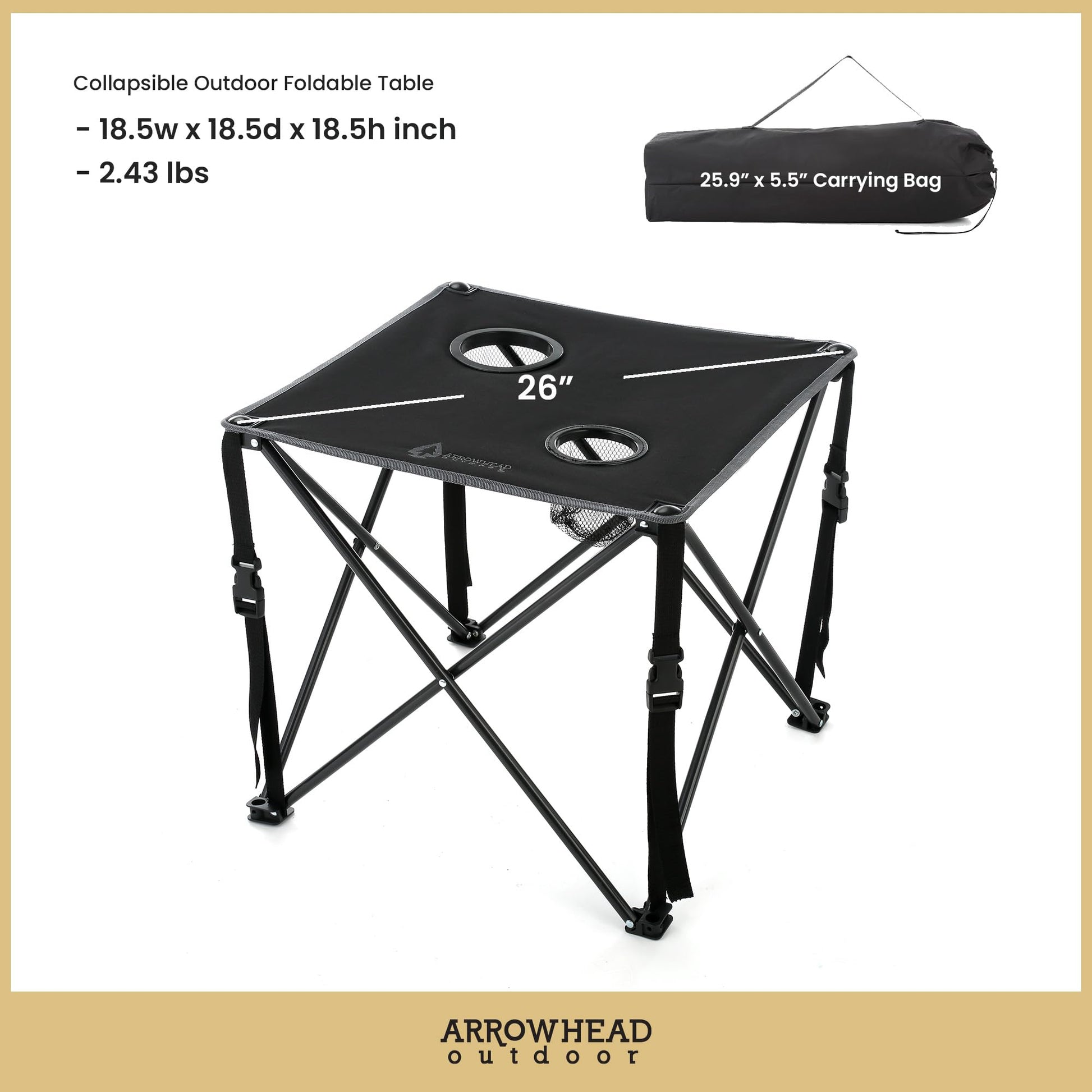 ARROWHEAD OUTDOOR 26” (66cm) Portable Camping Folding Table, 2 Cup Holders, Square, Carrying Case, Steel Frame, High-Grade 600D Canvas