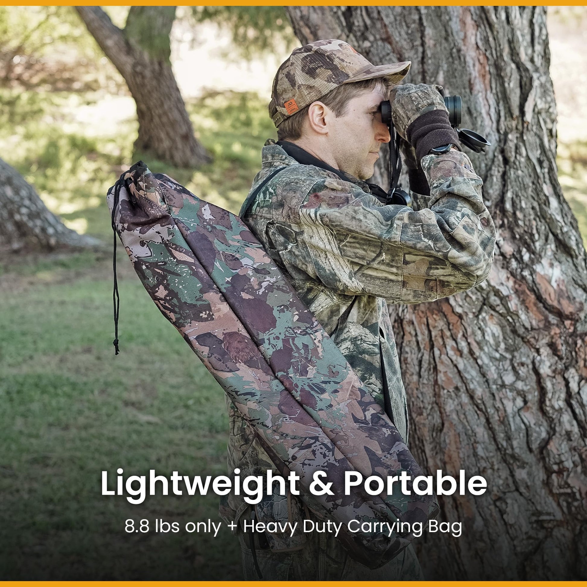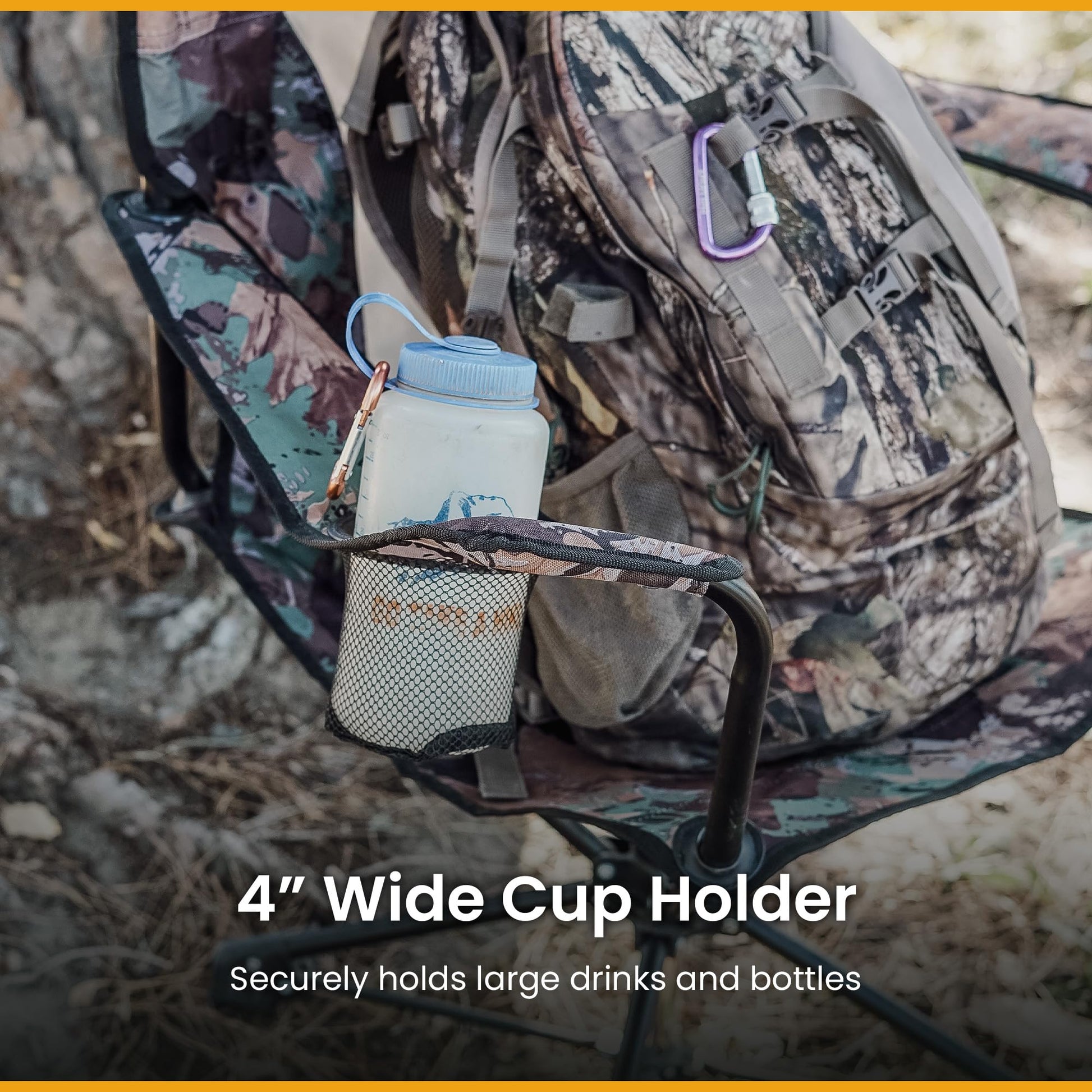 - [SILENT & STEALTHY 360° DEGREES OF ARTICULATION] – Effortless and quietly spins 360° for maximum mobility. Never spook a buck, tom, or boar. Includes adjustable armrests for perfect positioning.