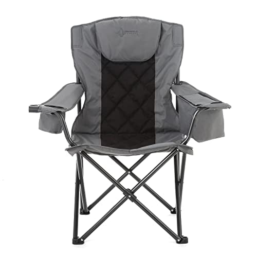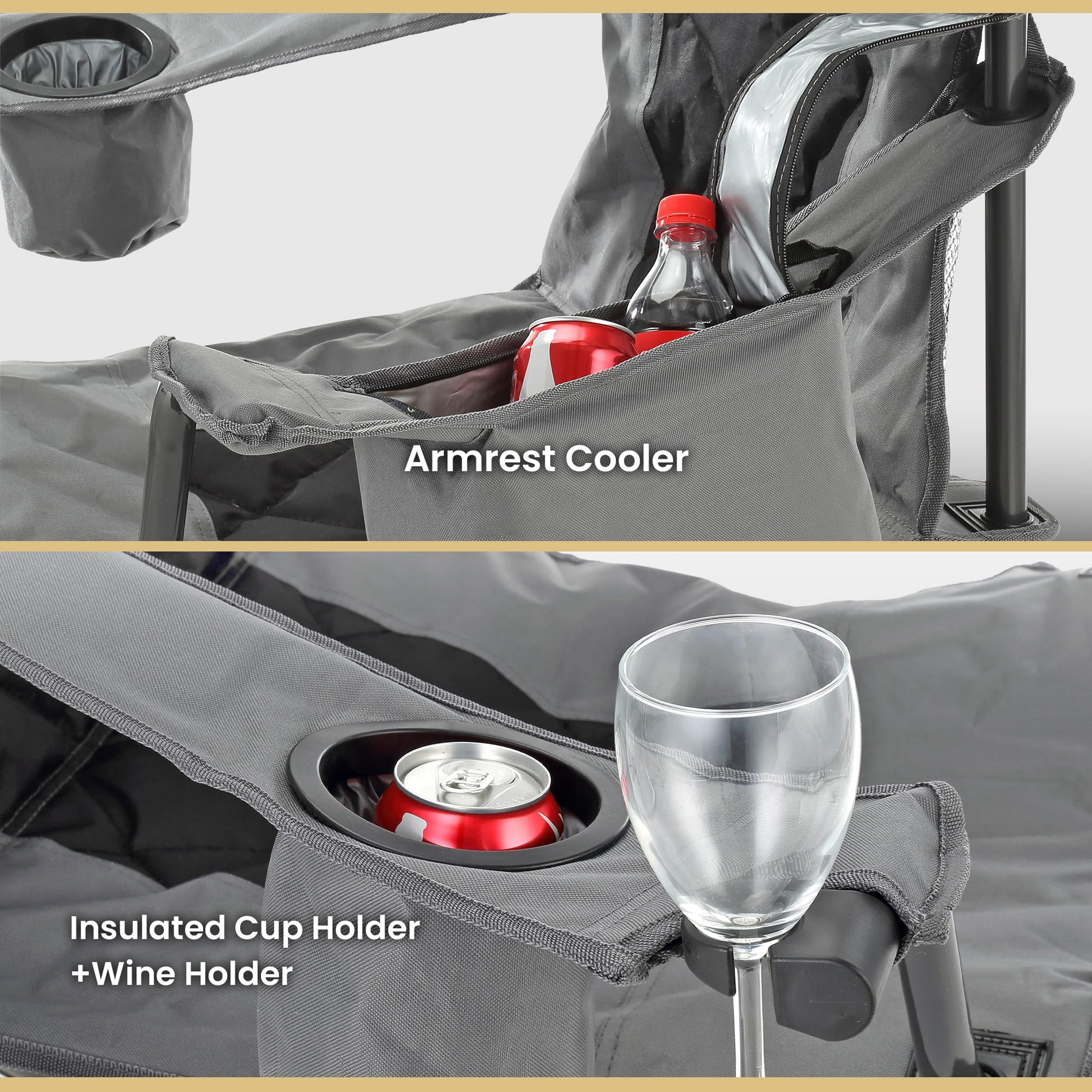 ARROWHEAD OUTDOOR Portable Deluxe Folding Camp Quad Chair w/Headrest, Glass & Cup Holders, Armest 6-can Cooler, Heavy Duty Carry Bag, 550 lbs Weight Capacity