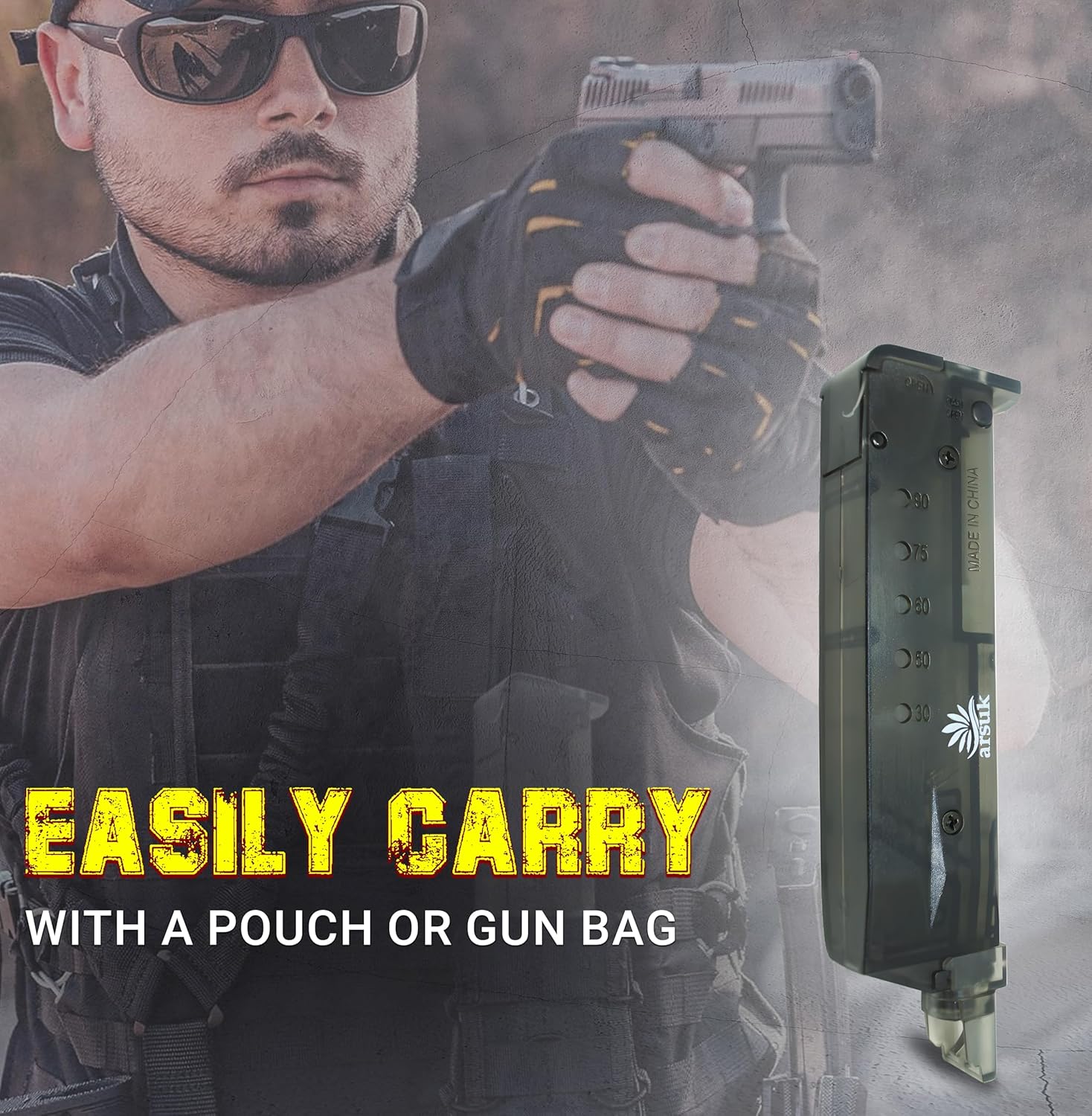 - High Capacity & Compact Design: This BB loader holds up to 90 rounds of 6mm BBs, allowing you to reload multiple times without constant refills. Despite its capacity, it remains lightweight and portable—perfect for carrying in a tactical vest, backpack, or pocket during long battles or outdoor events.