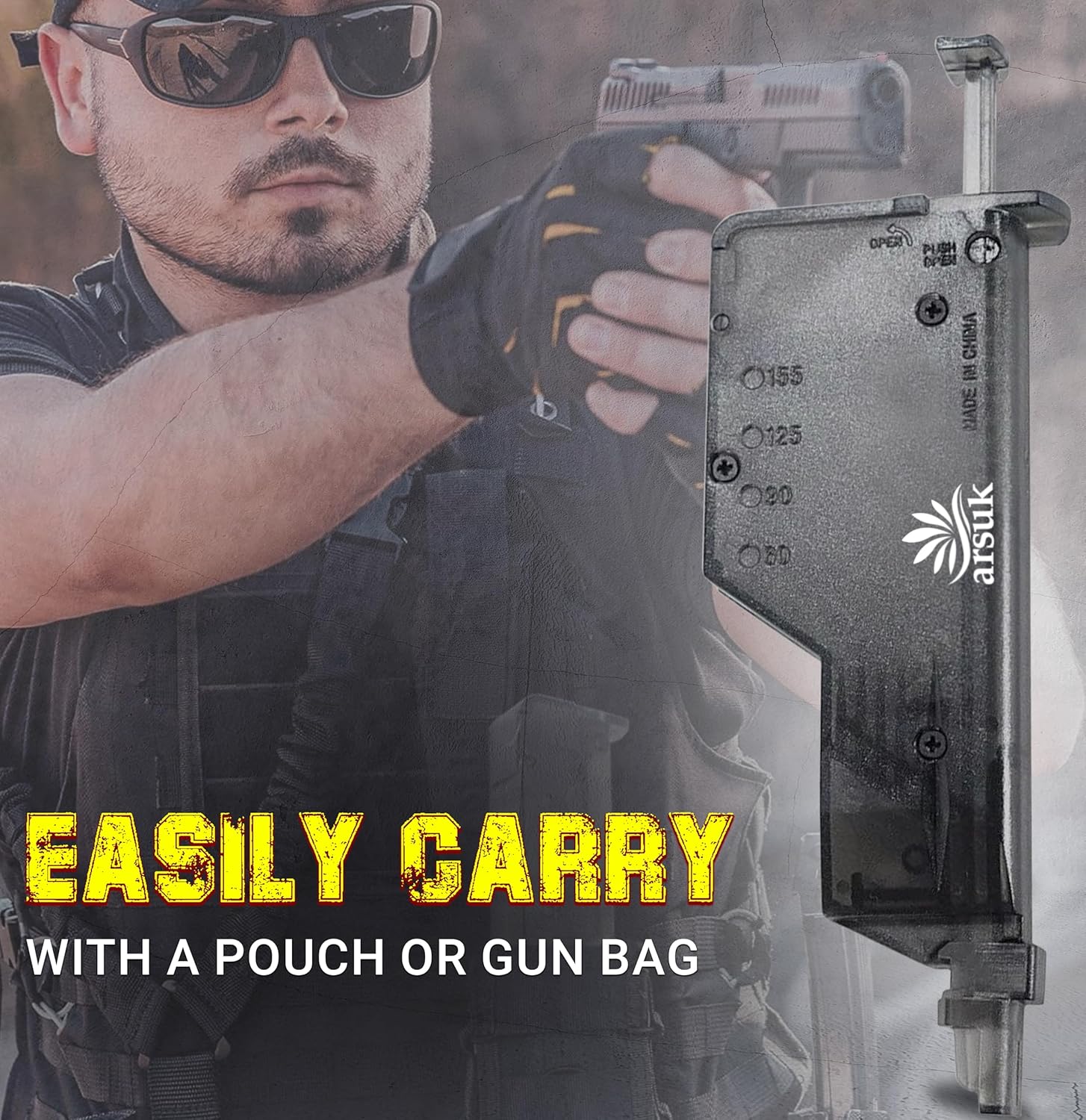 - Strong Build for Long-Term Use: Made from durable, high-quality plastic, this airsoft speed reloader is built to withstand regular field use. It resists drops, pressure, and wear over time. The smooth internal mechanism also helps prevent jams and spills, ensuring a consistent and reliable loading experience.