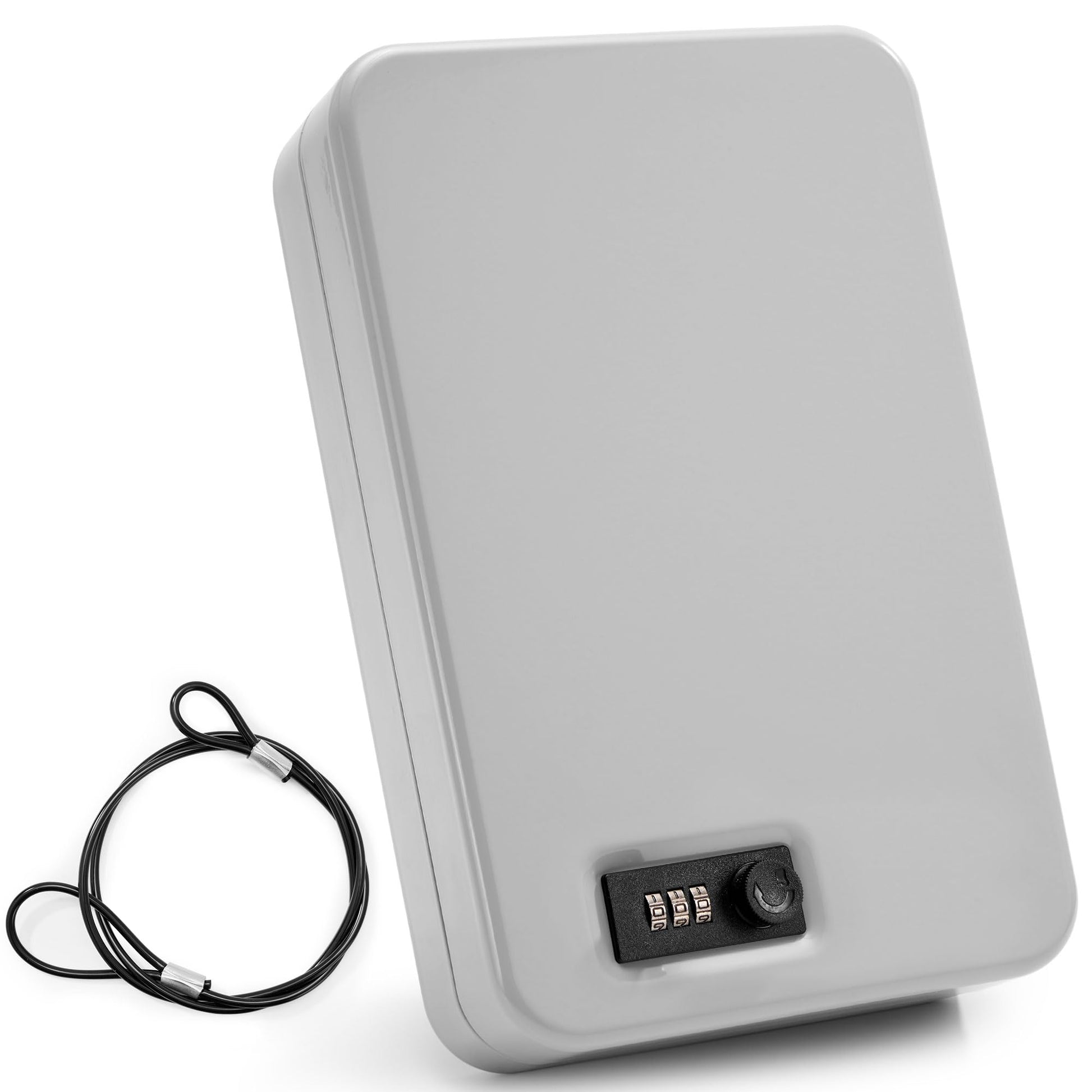 - 【Protection Safety】The handgun lock box keeps your stuff out of reach and safe. It will serve to keep kids away from a gun, as well as the potential for satisfying law enforcement in a carry situation. It comes with a metal tether wrapped in black sheathing to lock the safe where you want.