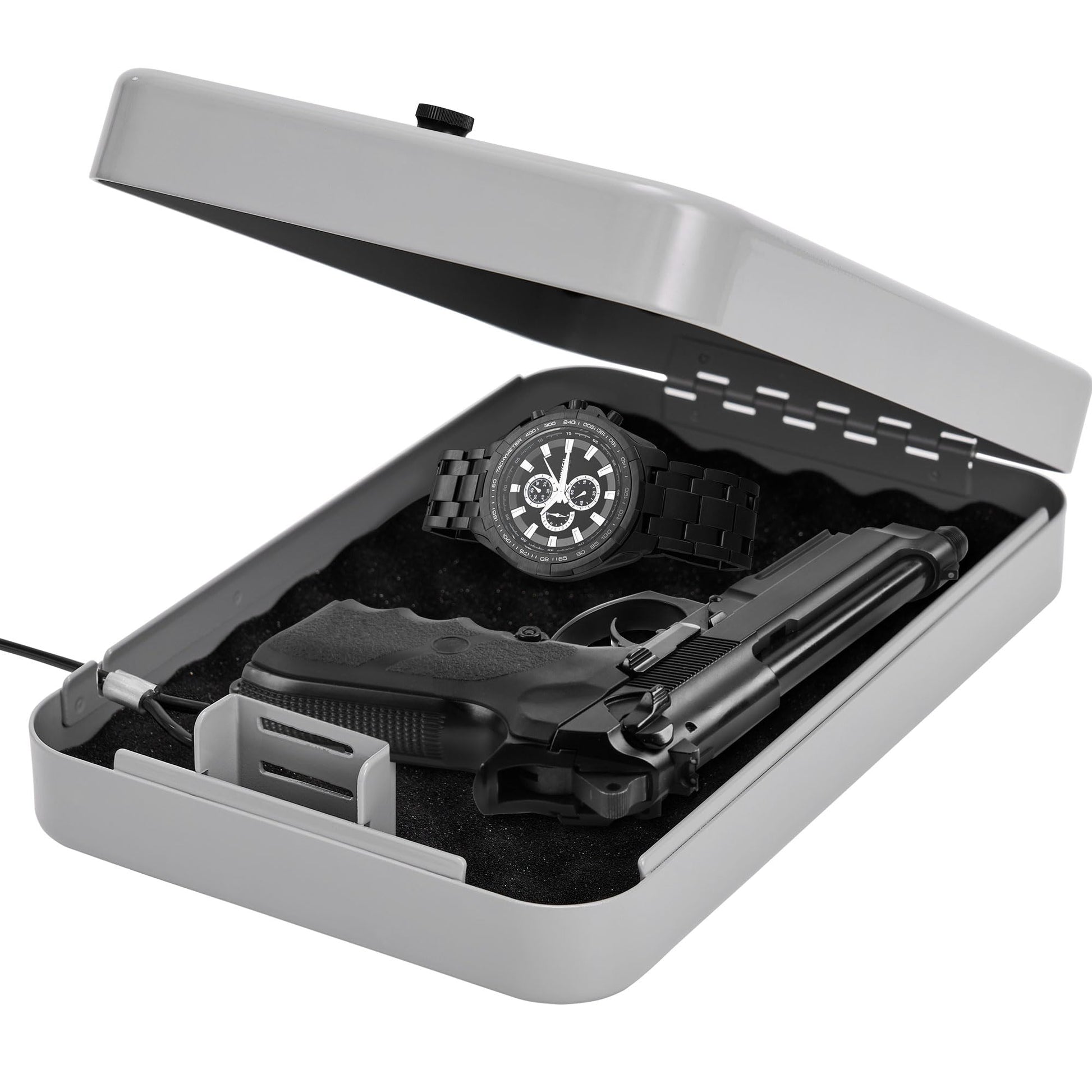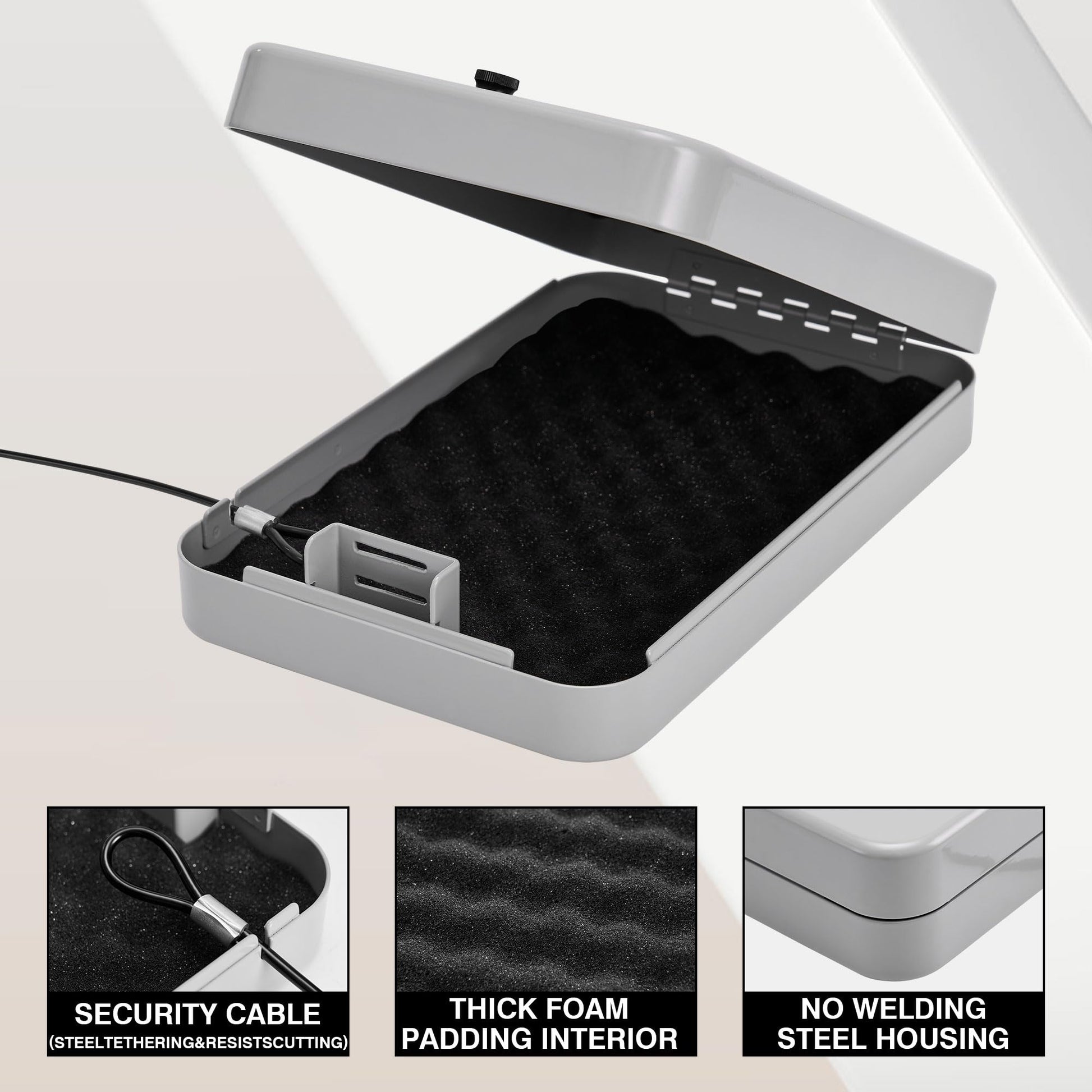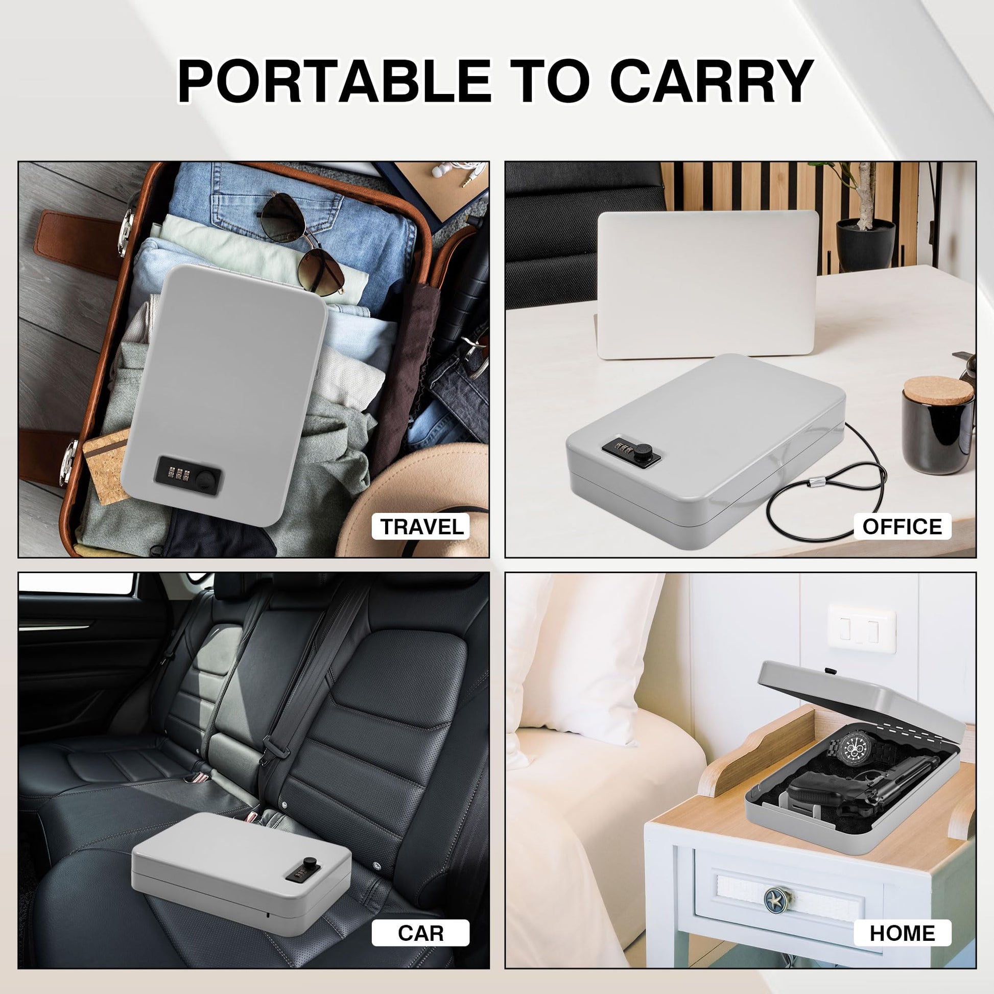 Arvilon Gun Safe, Car Gun Safe for Handgun with Combination Lock, Pistols safe Lock Box for Handgun, 11.4"x 7.5"x 2.5" Portable Hand Gun Safe Lock Box for Car, Home, Travel, Gray