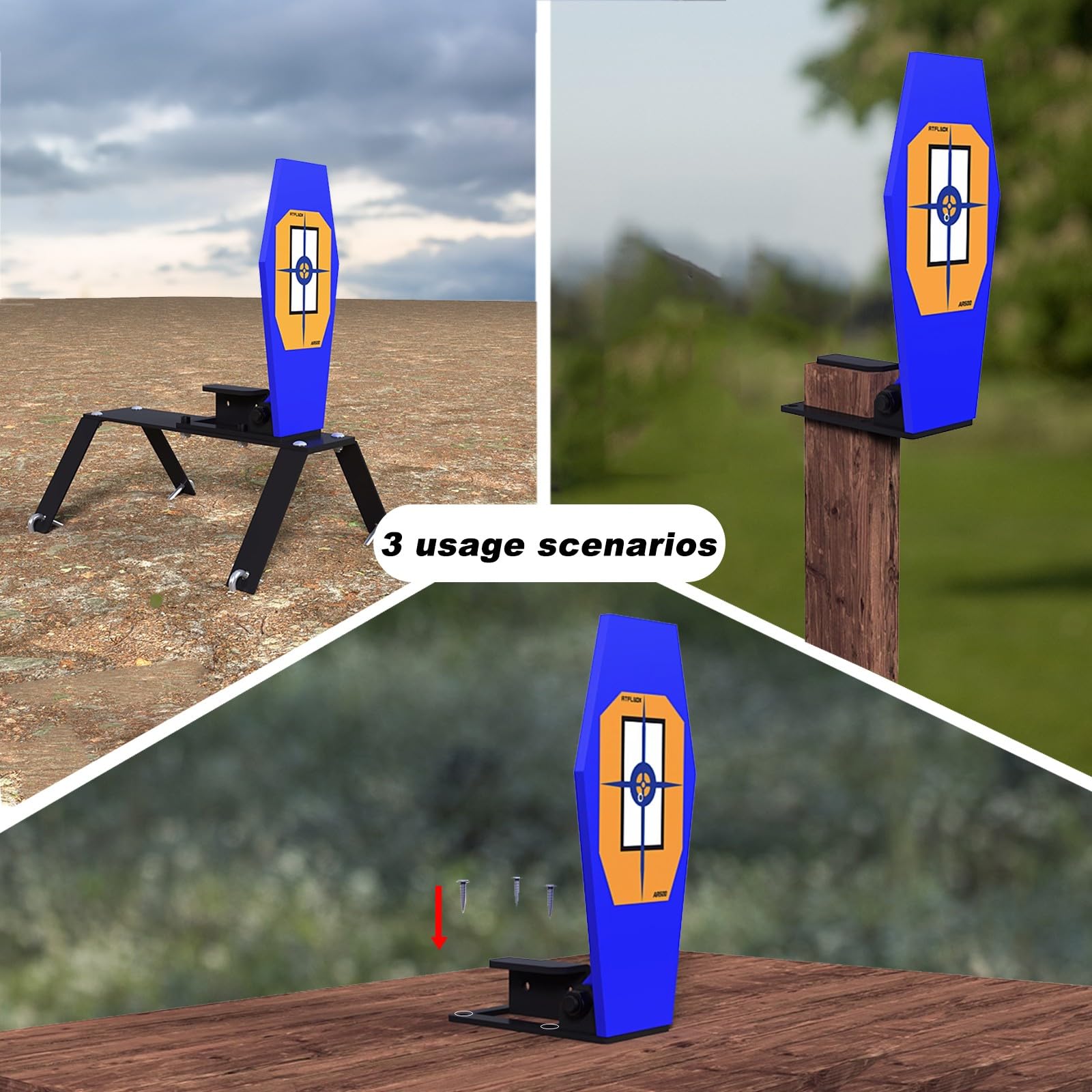 - MULTIPLE USES - The product offers a variety of mounting options to suit different environments and preferences. Securely mount the steel targets with the included sturdy base and four ground stakes to ensure stability and safety during outdoor use or extended practice sessions. Fixing onto the ground with 4 ground spikes or attach the target to the 2x4 post.