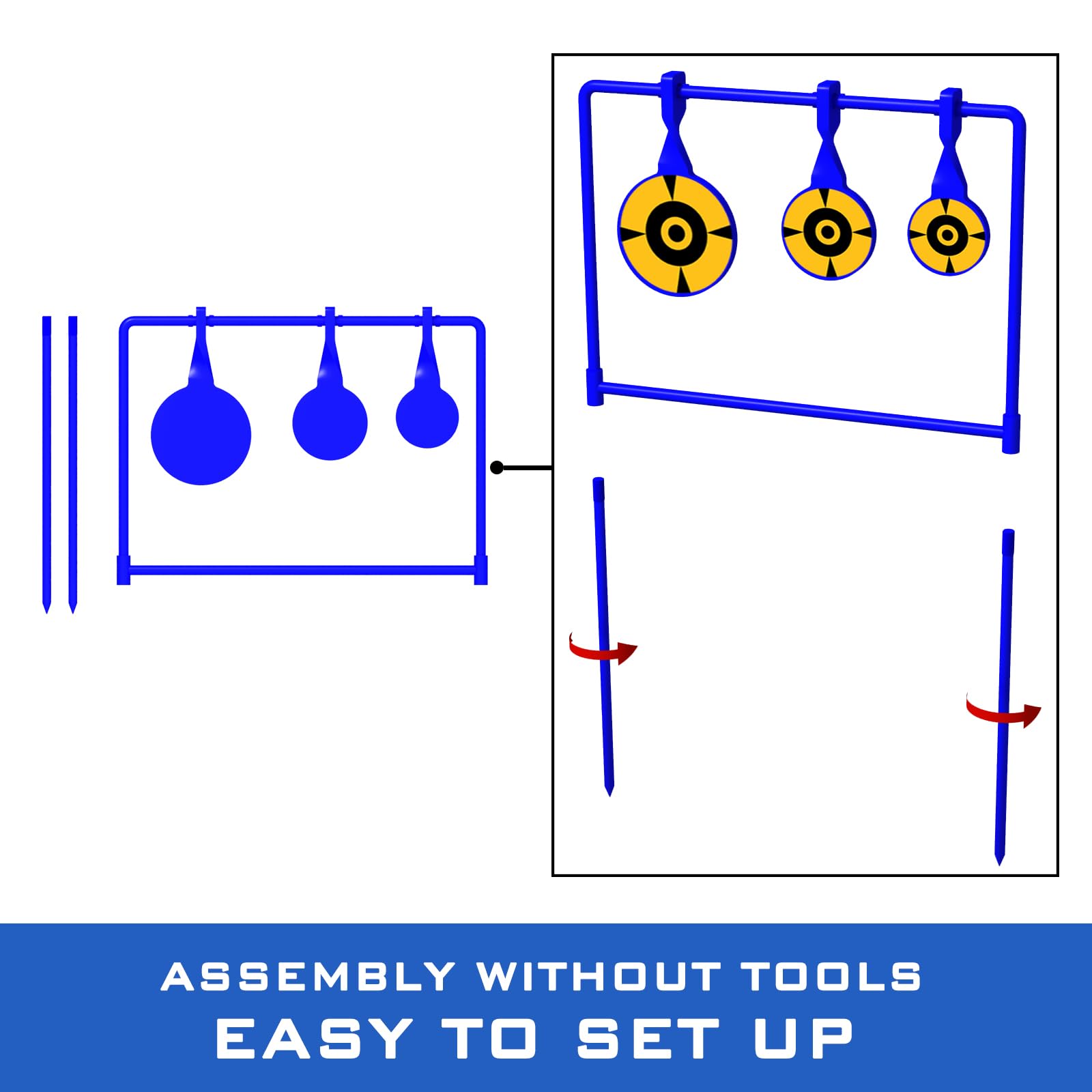 - Auto Reset: Three different sized targets will rotate to the set position when they are hit, no need to reset manually. Whether you are shooting alone or competing with a shooting partner, three different sized targets allow you to test your accuracy and challenge you to improve your shooting accuracy.