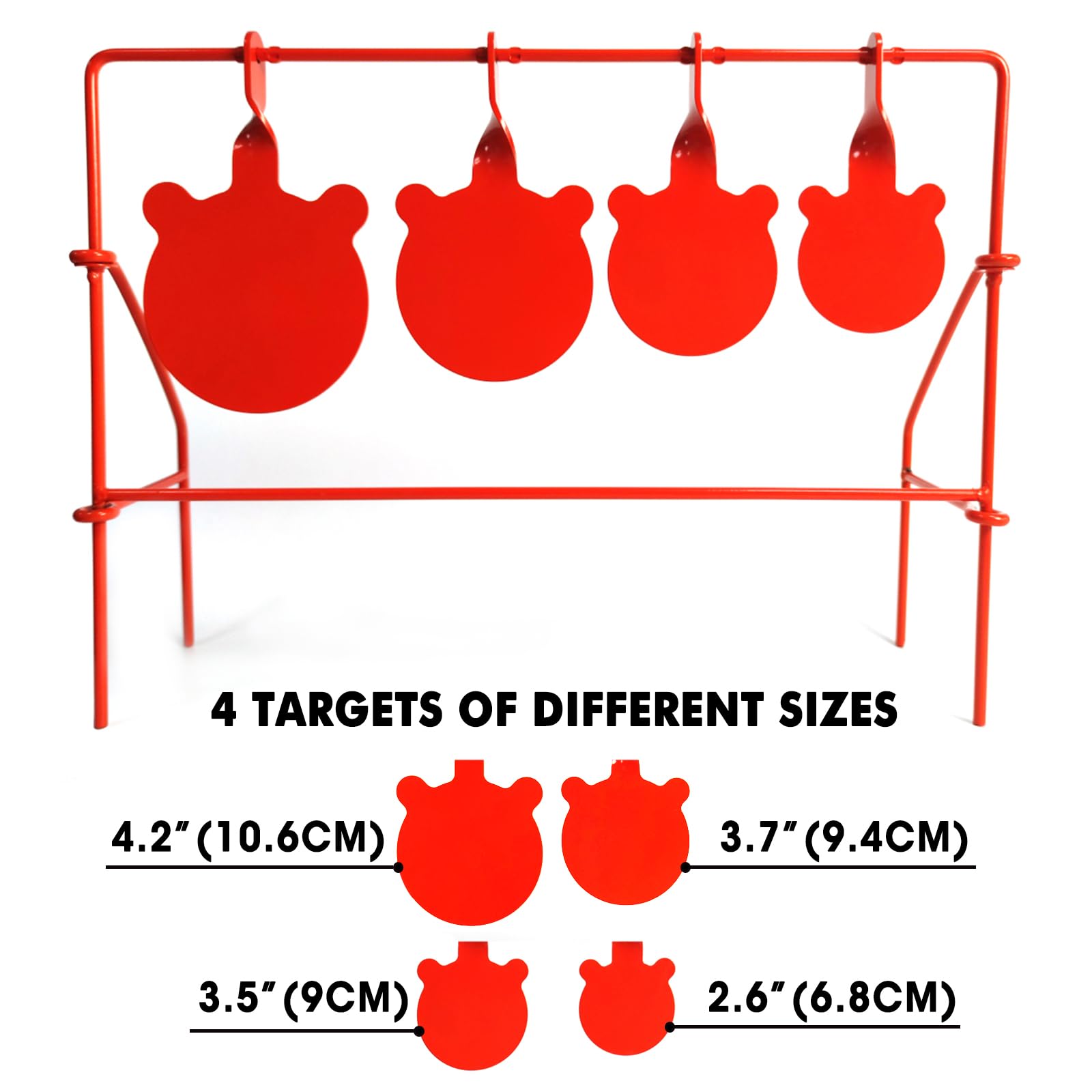 - FUN TARGETS: We have designed our shooting targets as 4 different sized gongs. 4 target sizes are 4.2 in ,3.7 in ,3.5 in, 2.6 in. These targets will allow you to improve your shooting accuracy through practice and can be used by a wider range of people, whether they are beginners or children.