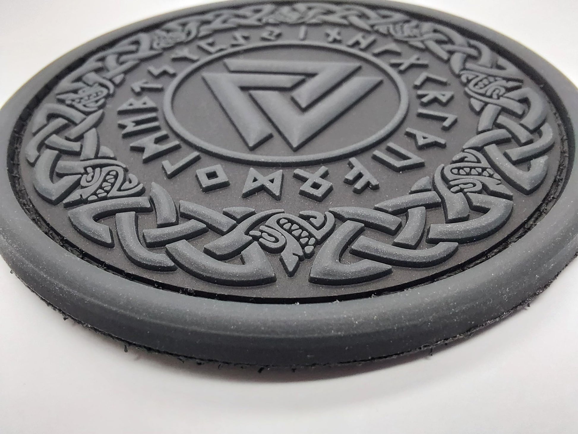ATHIPATCHES Military Morale Patch - Black Viking Odin Valknut Symbol Celtic Art PVC Rubber Tactical Emblem with Hook and Loop Fastener Backing, PMP001
