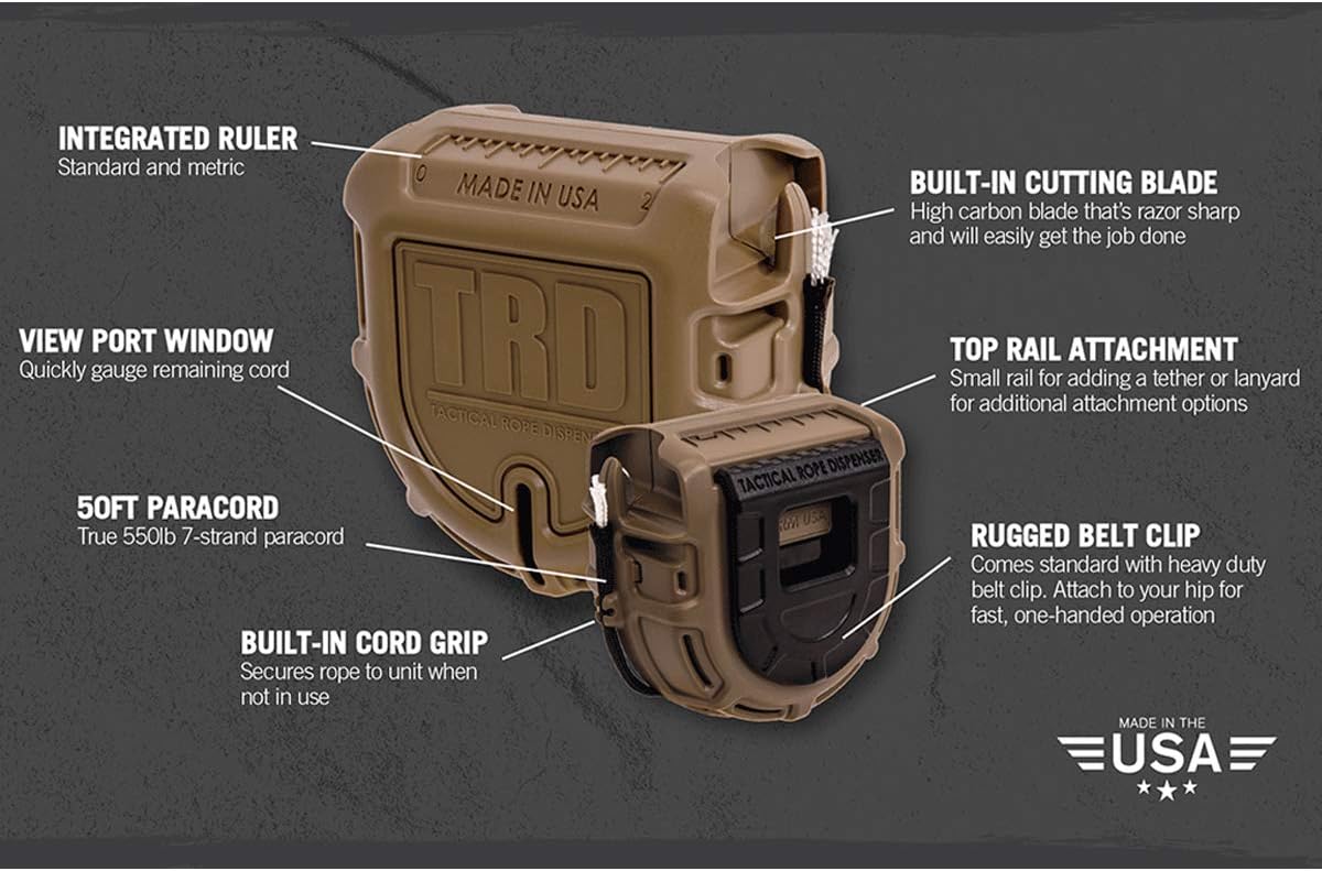 - Made in USA All components of the TRD – Tactical Rope Dispenser are proudly manufactured in the USA.