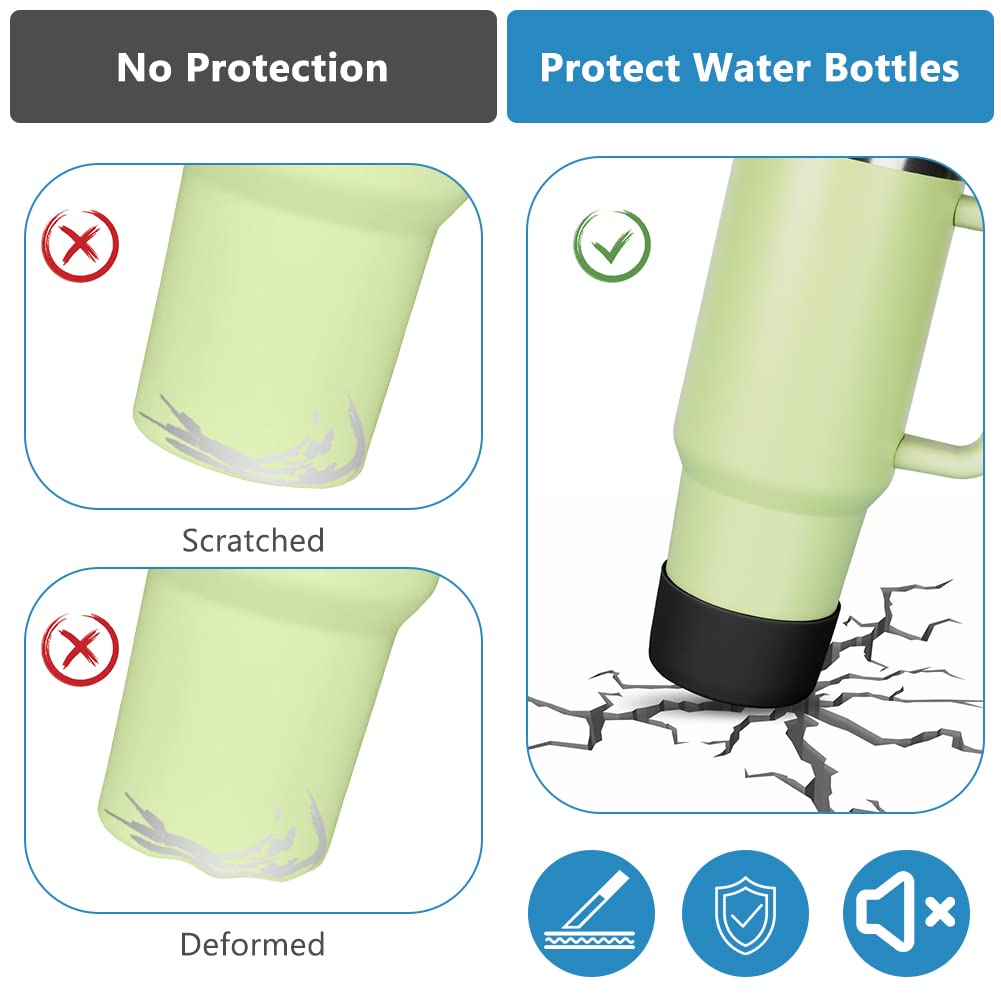 - 【Material Safety】: These bottom protectors are made of food silicone, which is BPA free, reusable and durable. It is easy to put on and take off the bottom, safe to use for your Stanley Quencher and IceFlow bottle. No need to wet the bottom or bottle and is suitable for all ages.