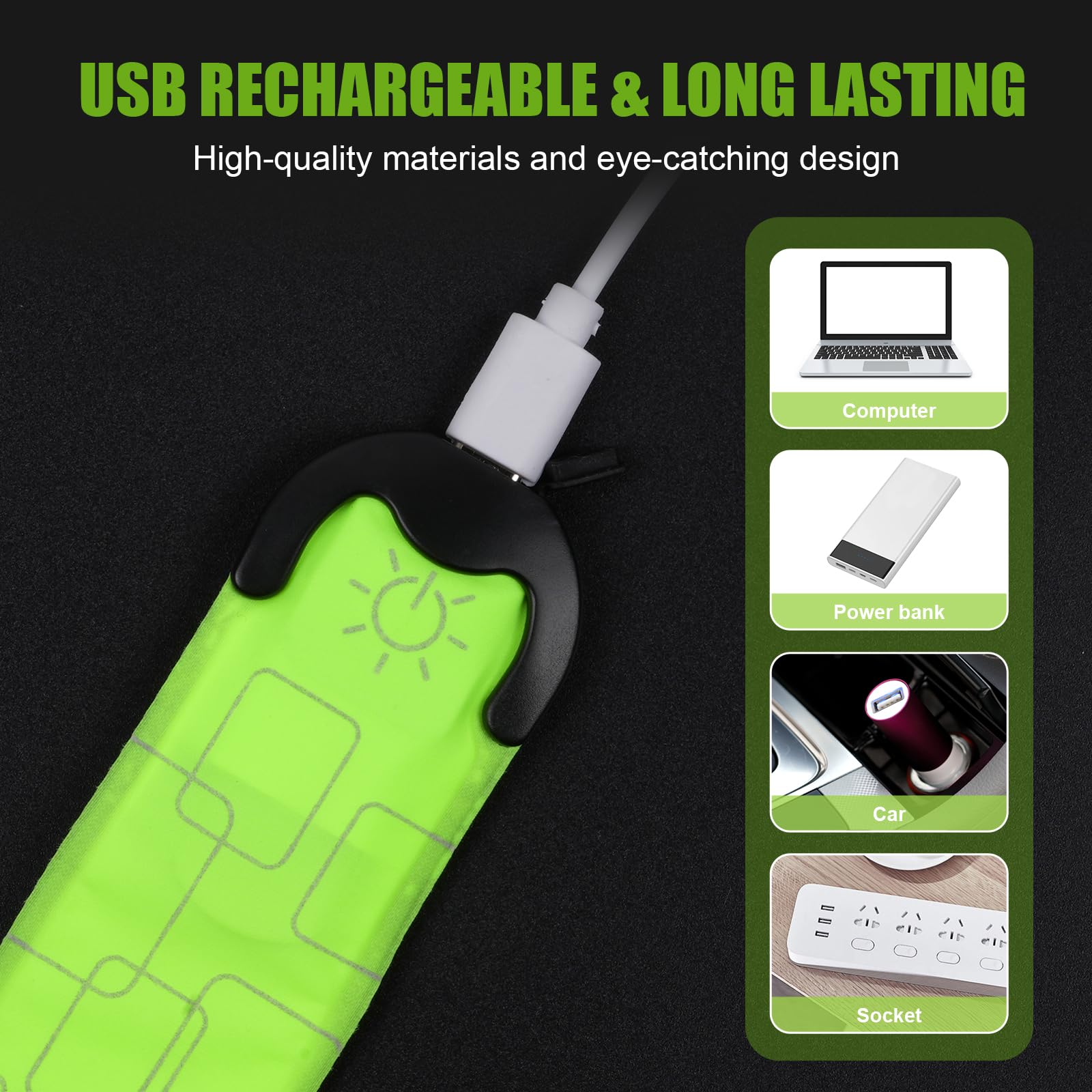 Details: The magnetic LED clip light is very bright at night and provides you with 360-degree ultra-high visibility during dusk and nighttime activities to protect your safety. Suitable for night running, jogging, dog walking, camping, cycling, and other night outdoor sports.Features:Strong magnetism - Each LED clip light contains 2 powerful neodymium magnets, which can firmly hold it in the desired position and will not fall off easily.High visibility--the reflective design of the outerwear, TPU light bar, and high-brightness LED light have better visibility and brightness, making your outdoor activities safer at night.Rechargeable - rechargeable via USB-C, eliminating the trouble of frequent battery replacement, very convenient, economical, and environmentally friendly.Three light modes - There are three light modes: fast flash, slow flash, and constant light to meet your different needs.Small and portable - The product is small in size and light in weight, only 16g, making it easy to carry and use when going out.High-quality Material - The exterior is made of special skin-friendly waterproof material, which is very strong and durable thanks to unique heat sealing technology and the use of nylon. Dust-proof, sweat-proof, and rain-proof (Please do not wash directly).Specifications:-Product size: 5.7*3.7*1.9 cm-Packing size: 10.6*7.5*1.8 cm-Product weight: 16g-Color: GreenPackage includes:-LED Magnetic Clip Light * 1-USB-C charging cable * 1Notice:1. Please allow slight measurement deviation due to manual measurement.2. Due to differences in monitors and lighting effects, the actual color of the item may be slightly different from the color shown in the picture.