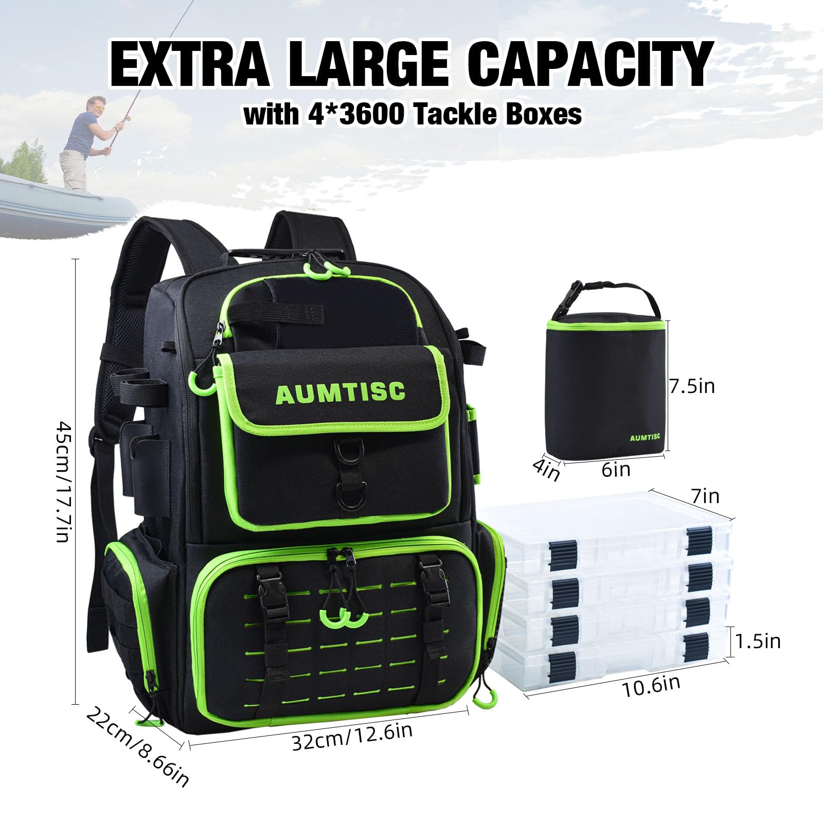 - DIMENSIONS: AUMTISC fishing tackle backpack size -12.6" x 8.66" x 17.7", with four 3600 size tackle boxes