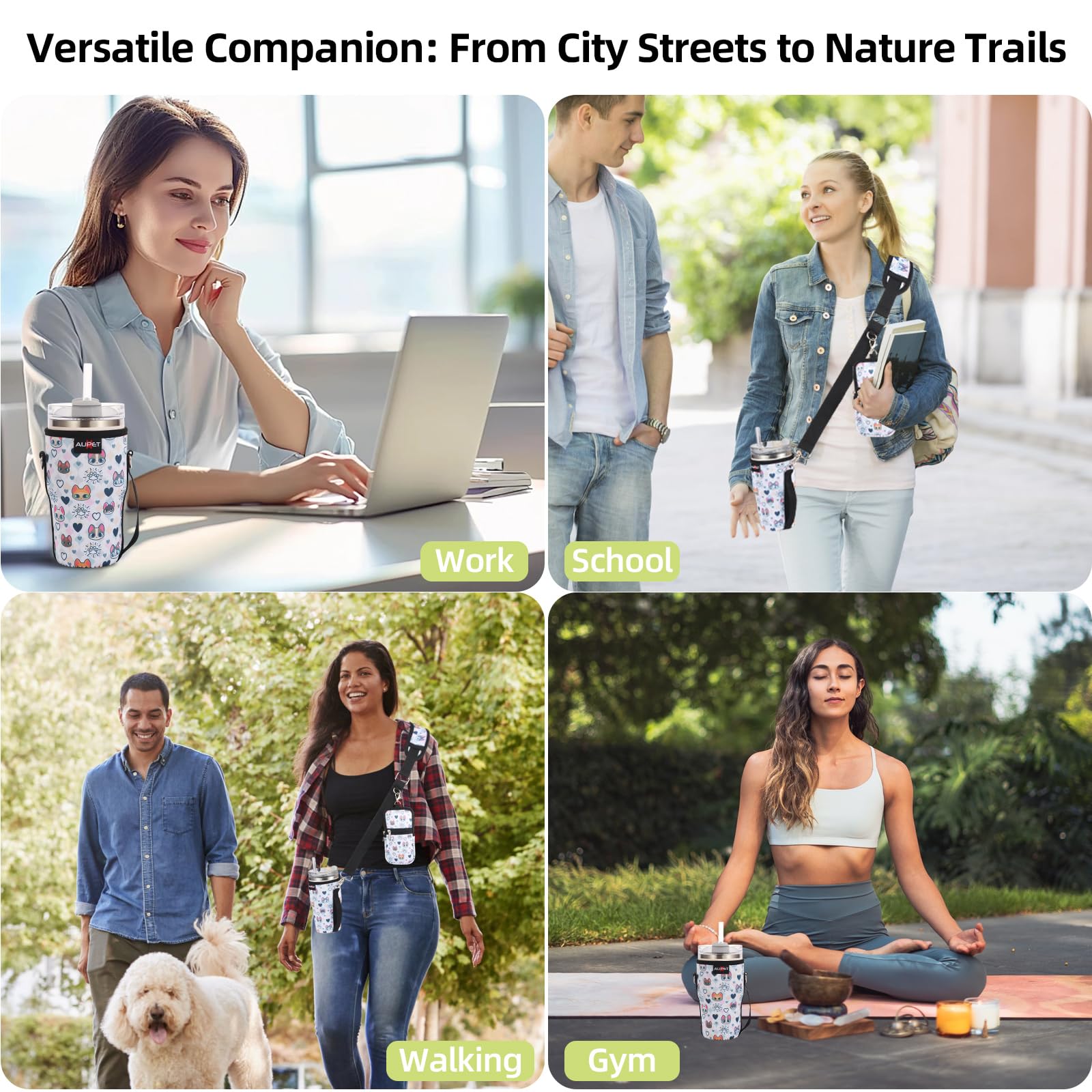- Detachable Carrying & Shoulder Strap & Phone Pouch:AUPET water bottle carrier for Tumbler 20oz/14oz comes with a detachable shoulder strap, adjusted from 27" to 56" for all body types. Wear the cup bag over the shoulder, cross-body, or simply carry by hand.And let's not forget the Detachable Phone Pouch Bag – they're like extra hands for your essentials: phone, cash, cards, keys...
