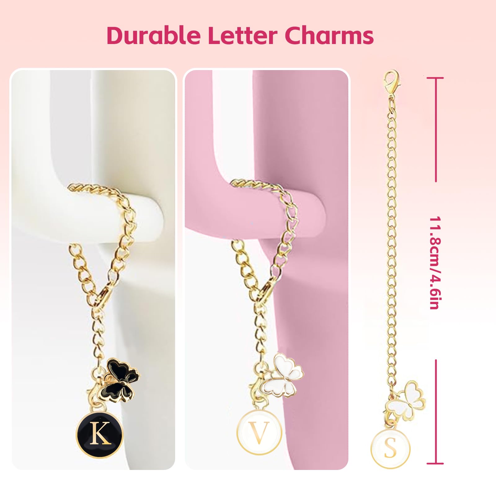 AUREHEN Letter Charm Accessories & Initial Straw Cover Cap & Protective Glitter Silicone Boot for Tumbler 20-40oz & Water Bottle 12-24oz and More Bottles Tumblers