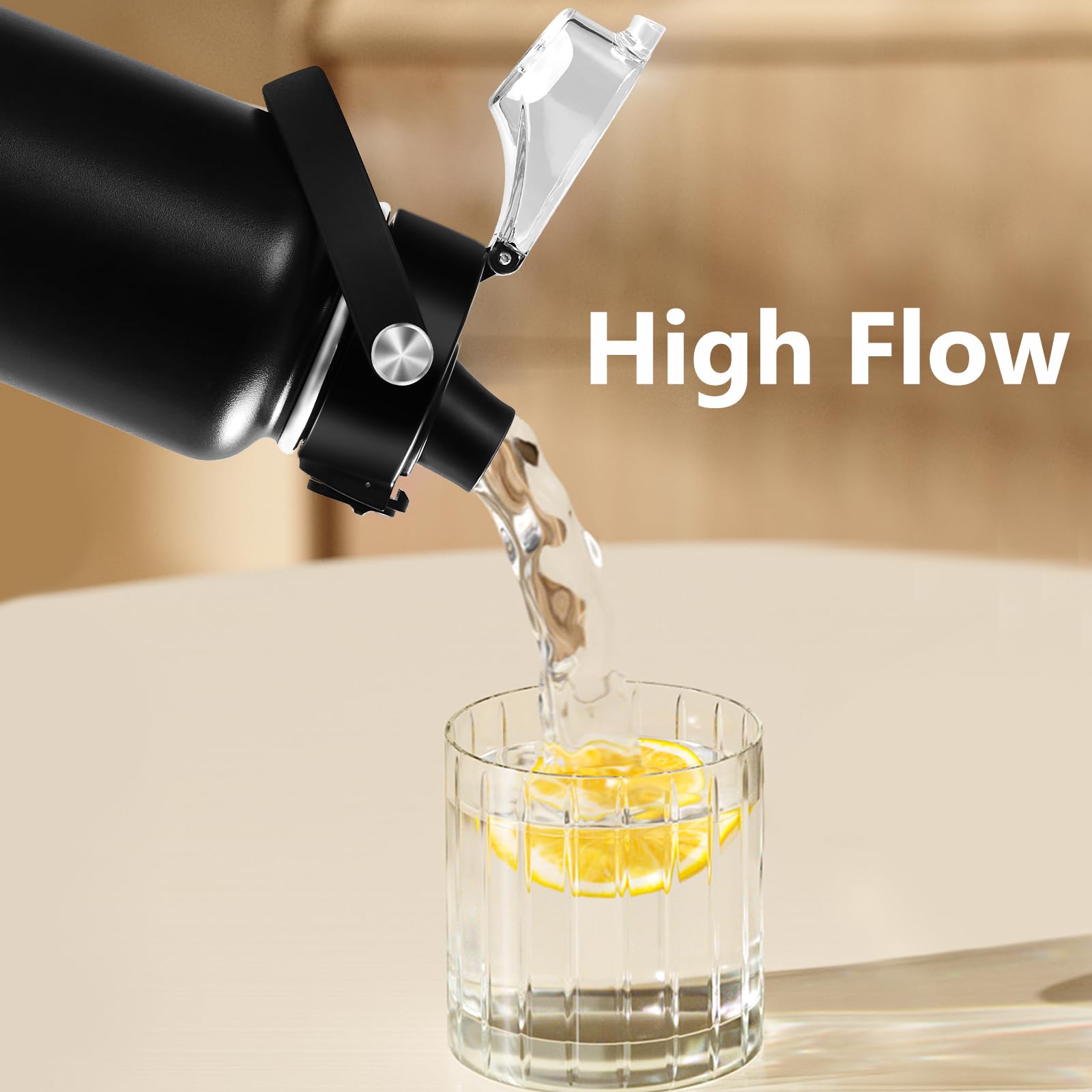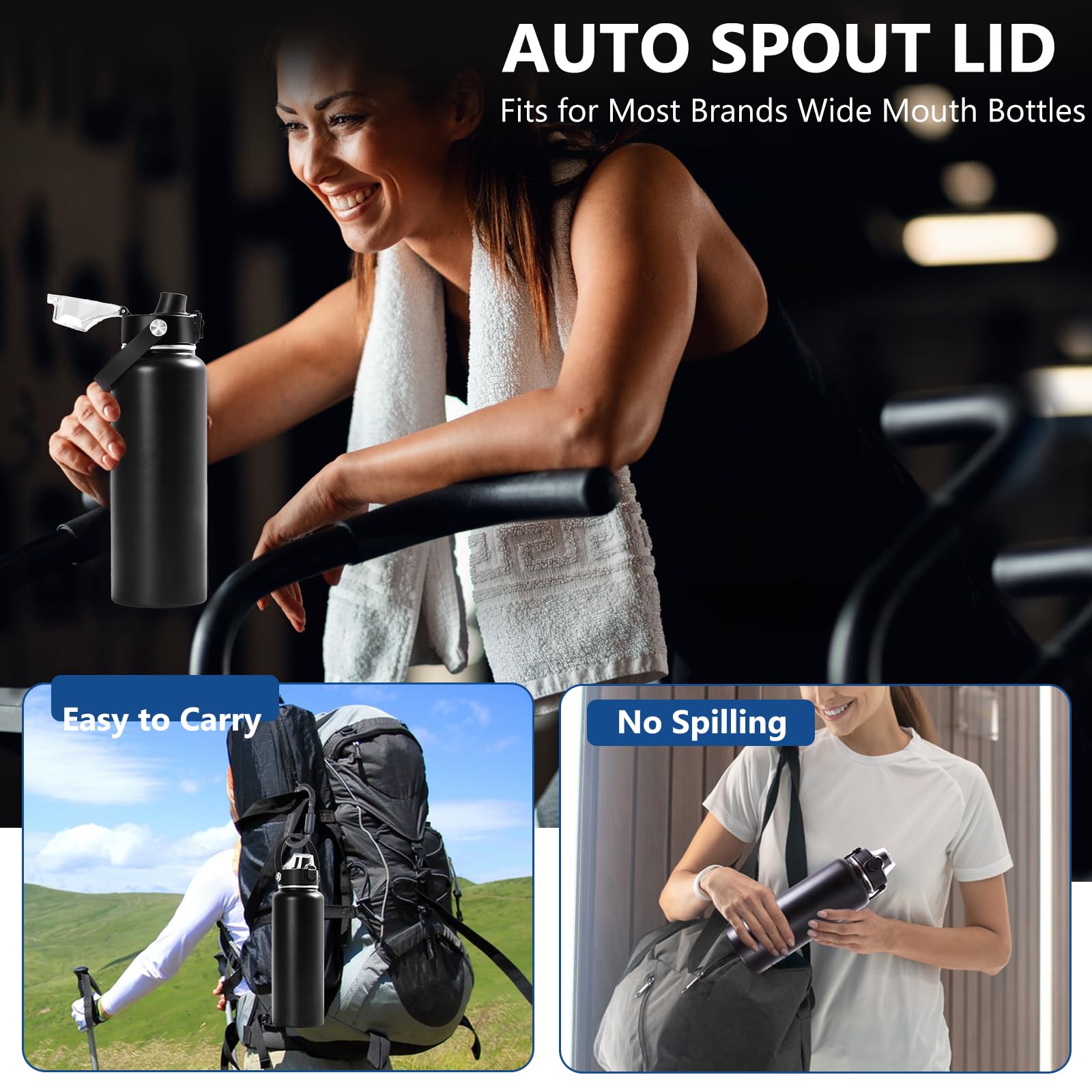 Auto Spout Lid for Hydro Flask Wide Mouth 12-64 oz Bottles, Flip Top Replacement Lid for HydroFlask Wide Mouth Bottles with Button Lock & Soft Handle