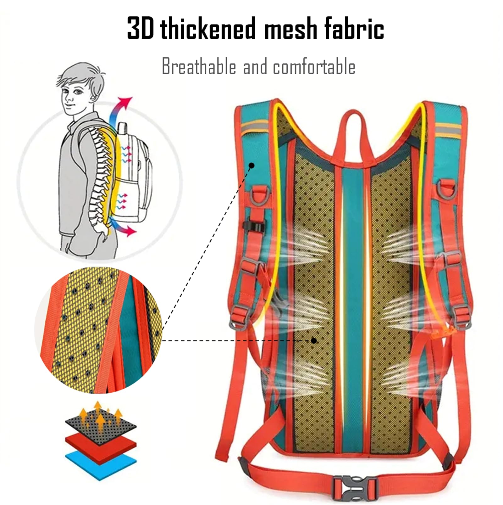 - Lightweight But Large Capacity: This backpack weighs less than 0.5KG and has a capacity of 15-20L. It can meet the basic storage needs of most daily outdoor activities. Very suitable for outdoor activities such as hiking, cycling, running, camping, and fishing.