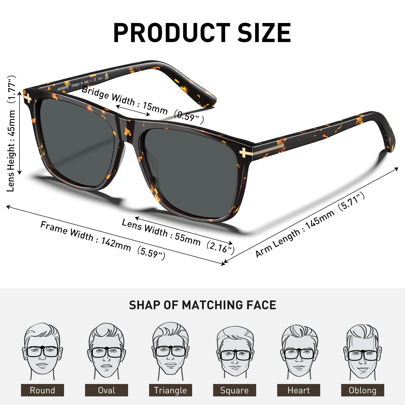 - 【Acetate Frame Rectangle Men's Sunglasses】Our sunnies are made of Italy handpolished acetate material. Compared with cheap peeling plastic frame whose color are sprayed on, our glossy frame retains color brightness impeccably over time because its hue is natively embedded in material.