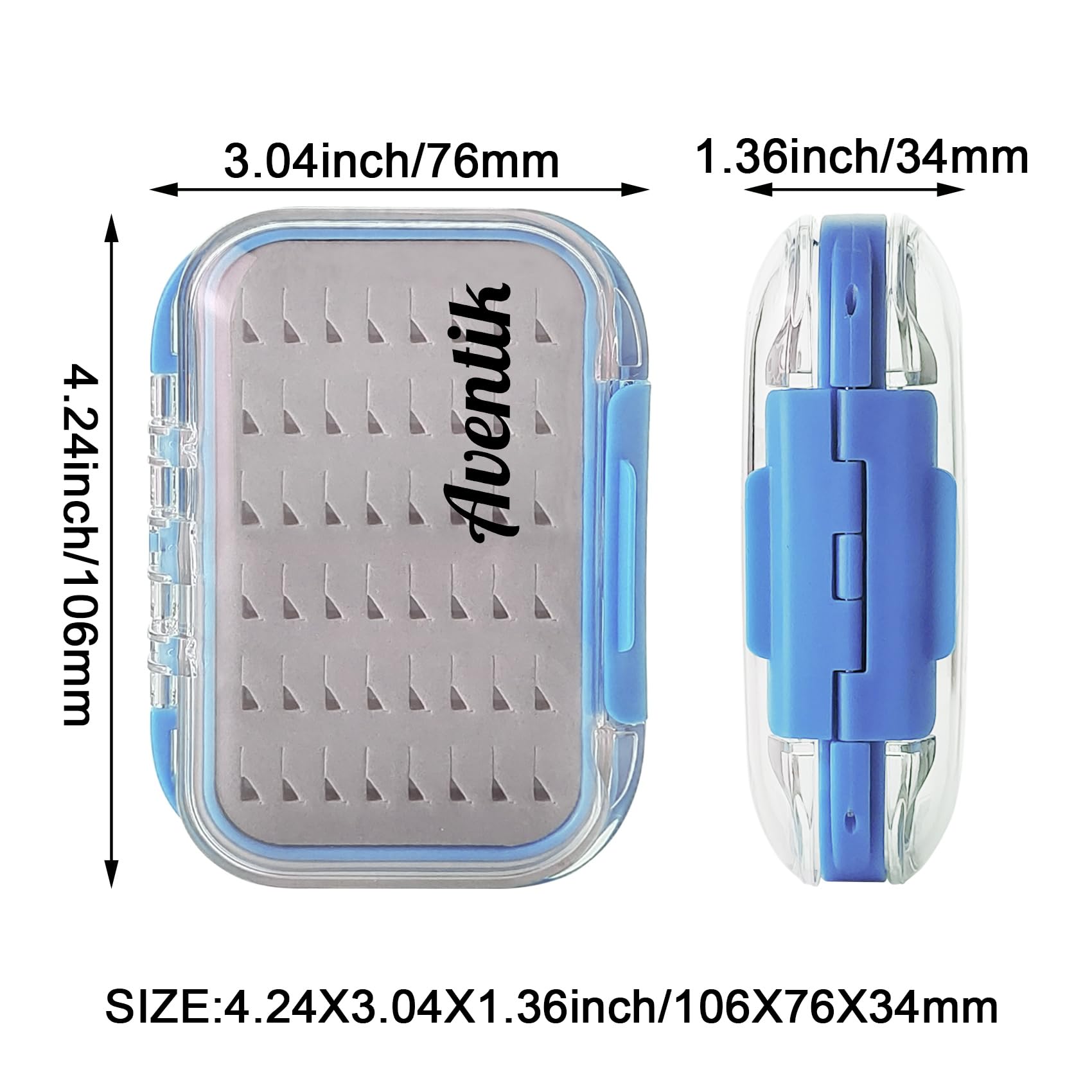 Aventik Fly Fishing Box Jig Box Waterproof Float Lightweight Double Side Large Capacity Easy Grip Clear Lid Fly Fishing Lures Box(H18 Blue, SIZE A:4.24X3.04X1.36inch)