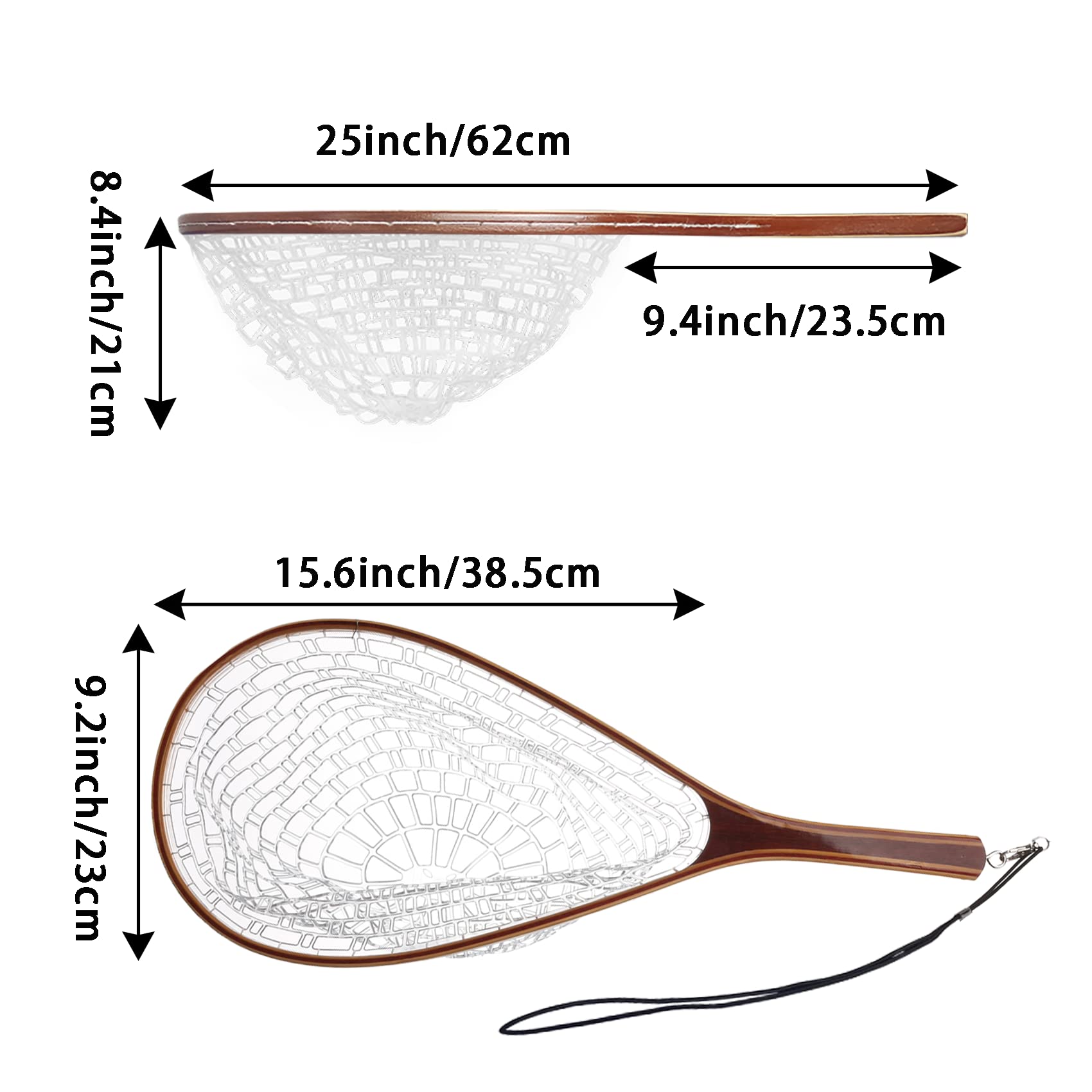 - Tear drop net designed with both fish men and fish in mind.Perfect clear nets for fly fishing on river, lake, or stream. The frame is made from hardwood. The tear drop net handle is 7.6"/19cm, Hoop is10 x 17"/25x43cm, Deep is 12.5"/28cm.all length 25inch/62cm.