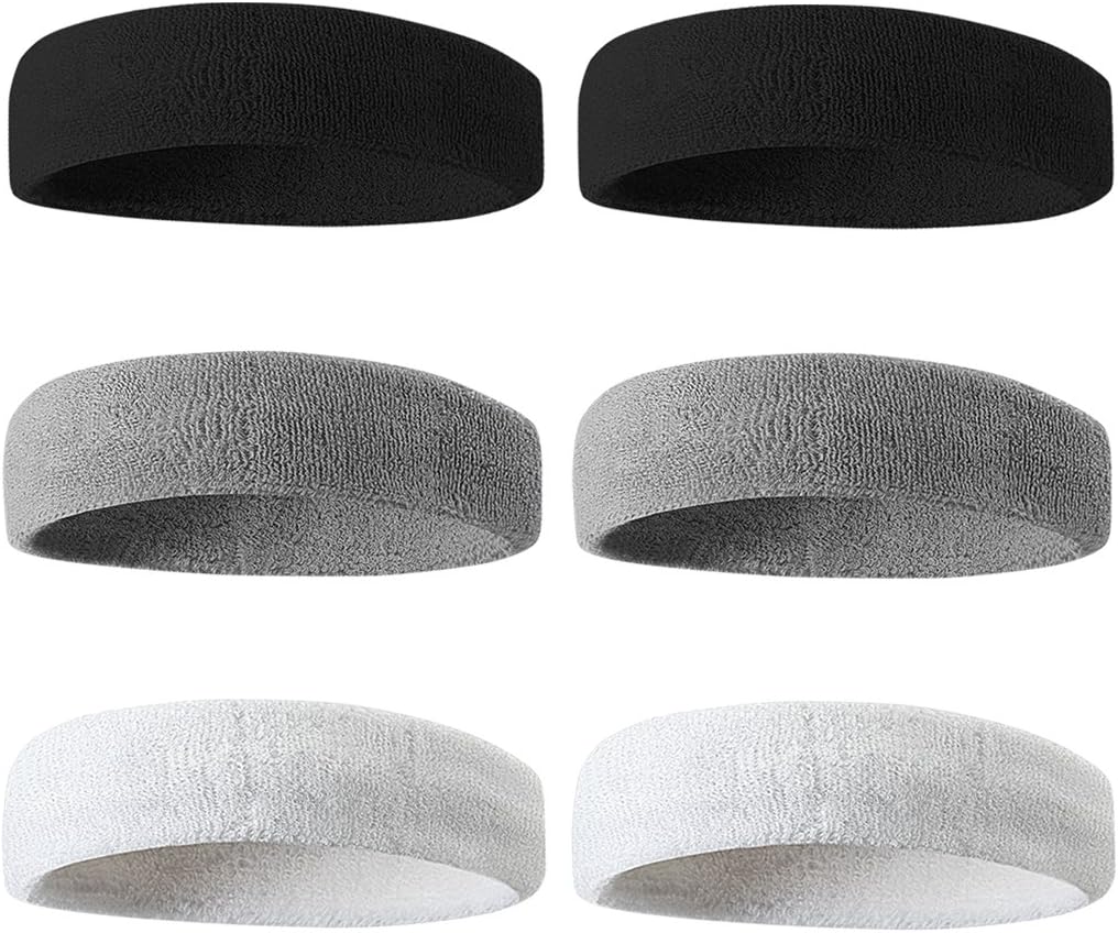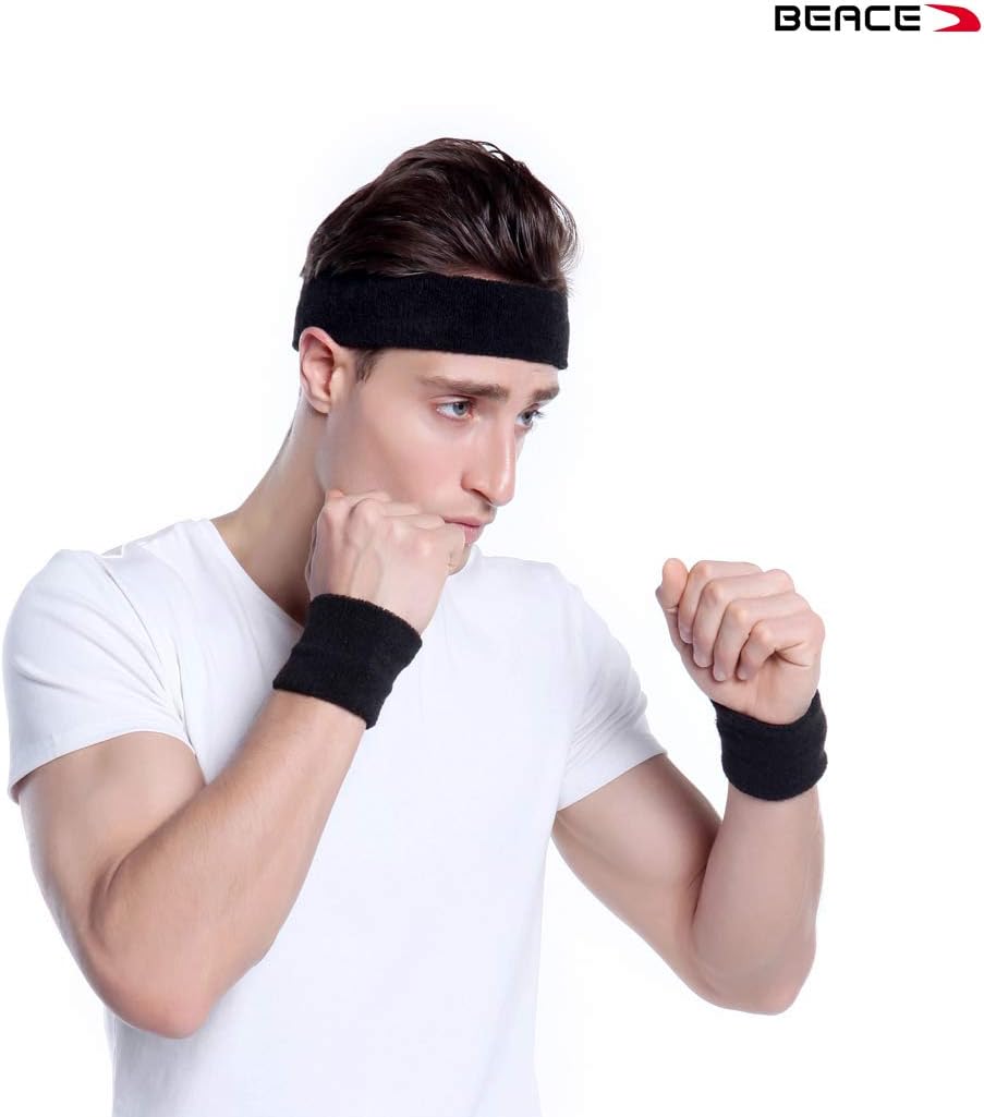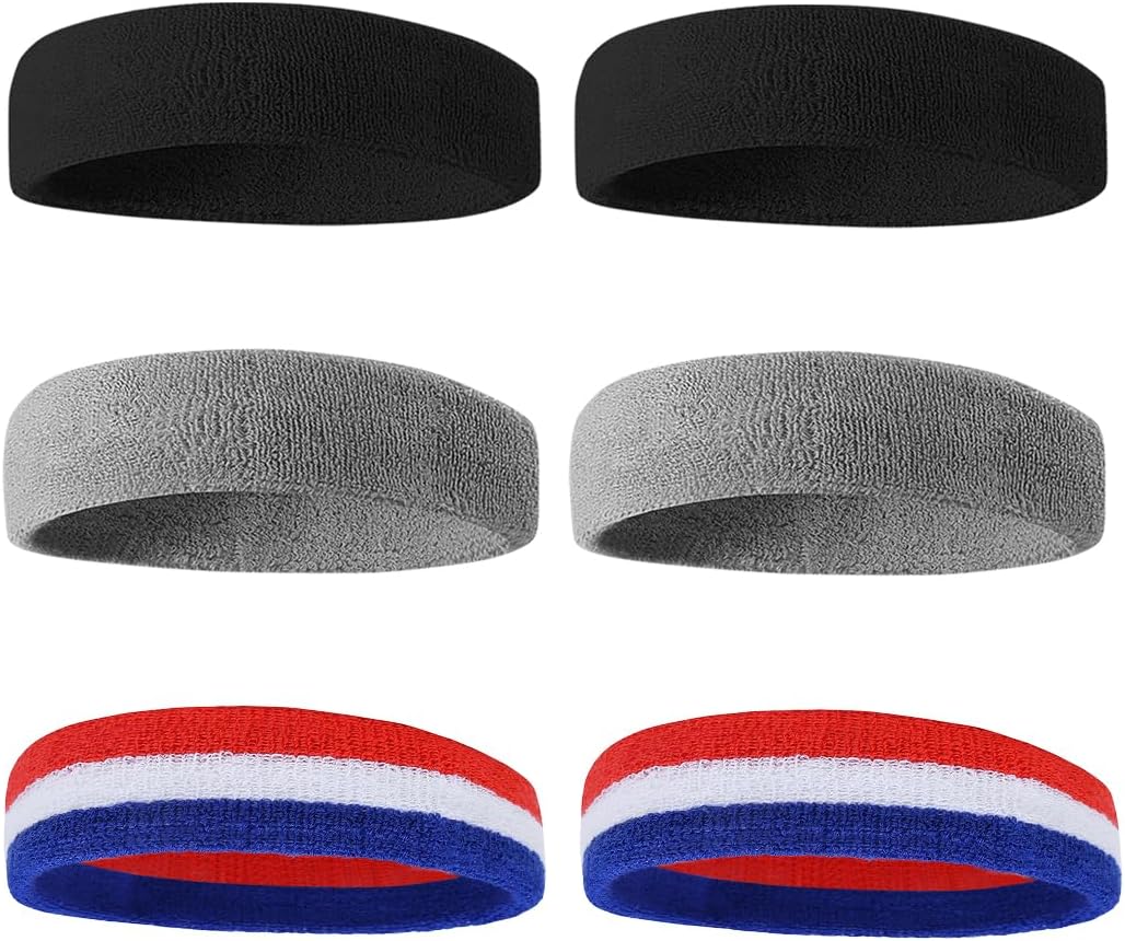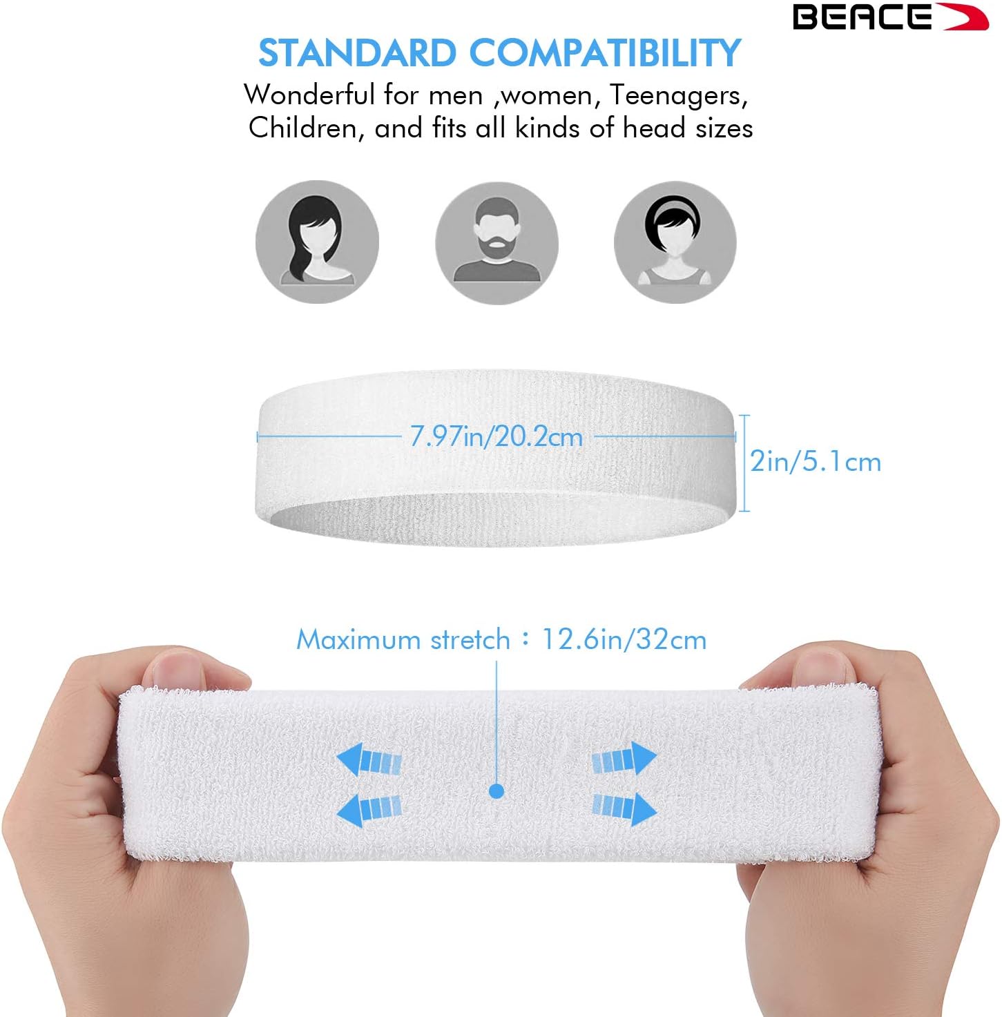 BEACE Sweatbands Sports Headband for Men & Women - 6PCS Moisture Wicking Athletic Cotton Terry Cloth Sweatband for Tennis, Basketball, Running, Gym, Working Out