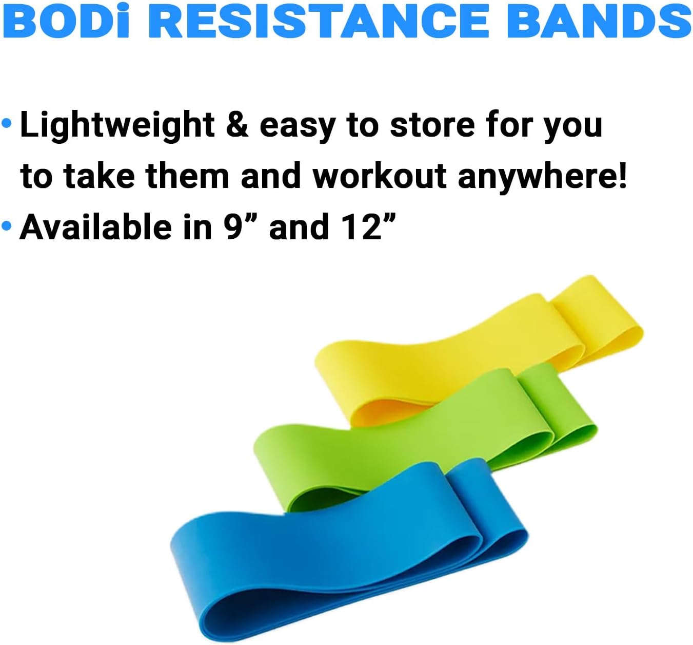 - THREE RESISTANCE LEVELS: Beachbody’s exercise loops come in three resistance levels (light, medium, and heavy) for all fitness levels. YELLOW = Light Resistance, GREEN = Medium Resistance, BLUE = Heavy Resistance.