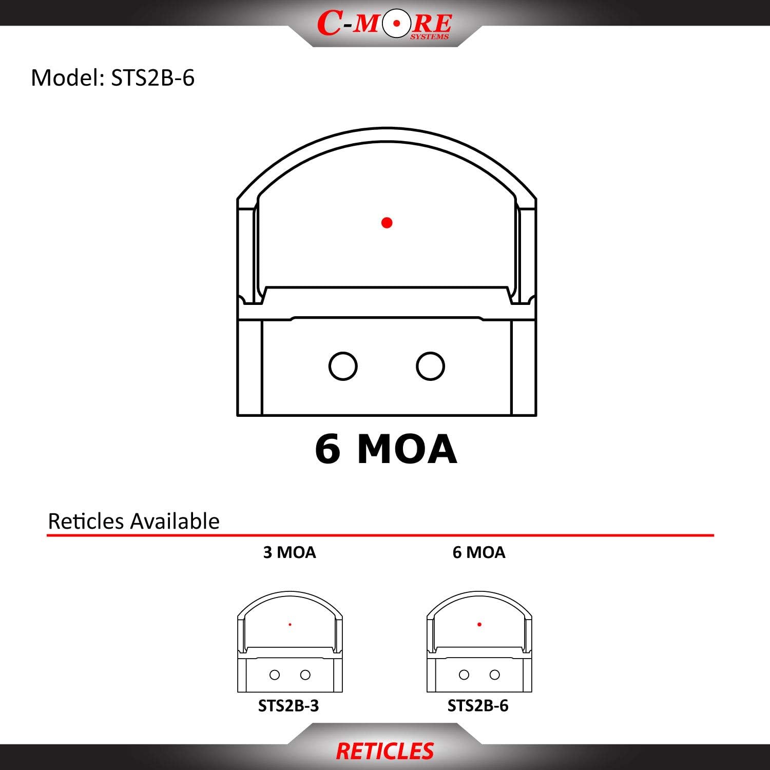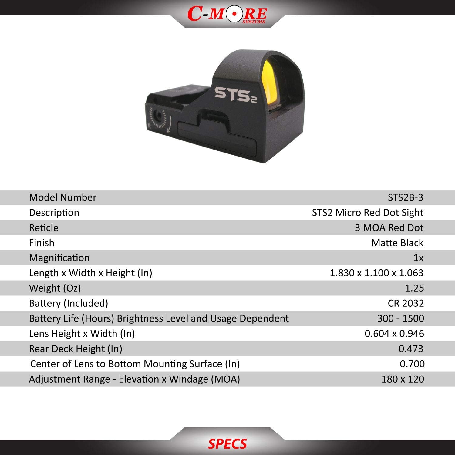 C-MORE Systems Micro Red Dot Sight STS2B, 1x Magnification, Made of Aircraft Grade Aluminum, Adjusts for Wind & Elevation, Ultra Bright, All Weather, Waterproof, Lightweight, Matte Black