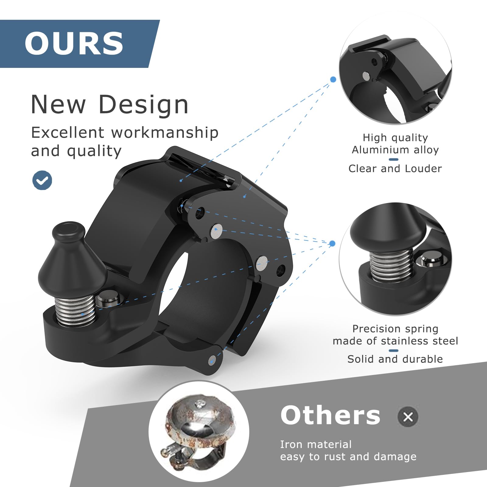 - High Quality Durable Material - The sounding board of the bell is made of aluminum alloy CNC machined and baked at high temperature, which makes the sound more long, penetrating and crisp. 4 stainless steel springs suspend the sound generator plate on the aluminum alloy bracket, when the ling hammer strikes the sound generator plate, it generates high intensity vibration, thus producing a crisp and pleasant ringing sound.
