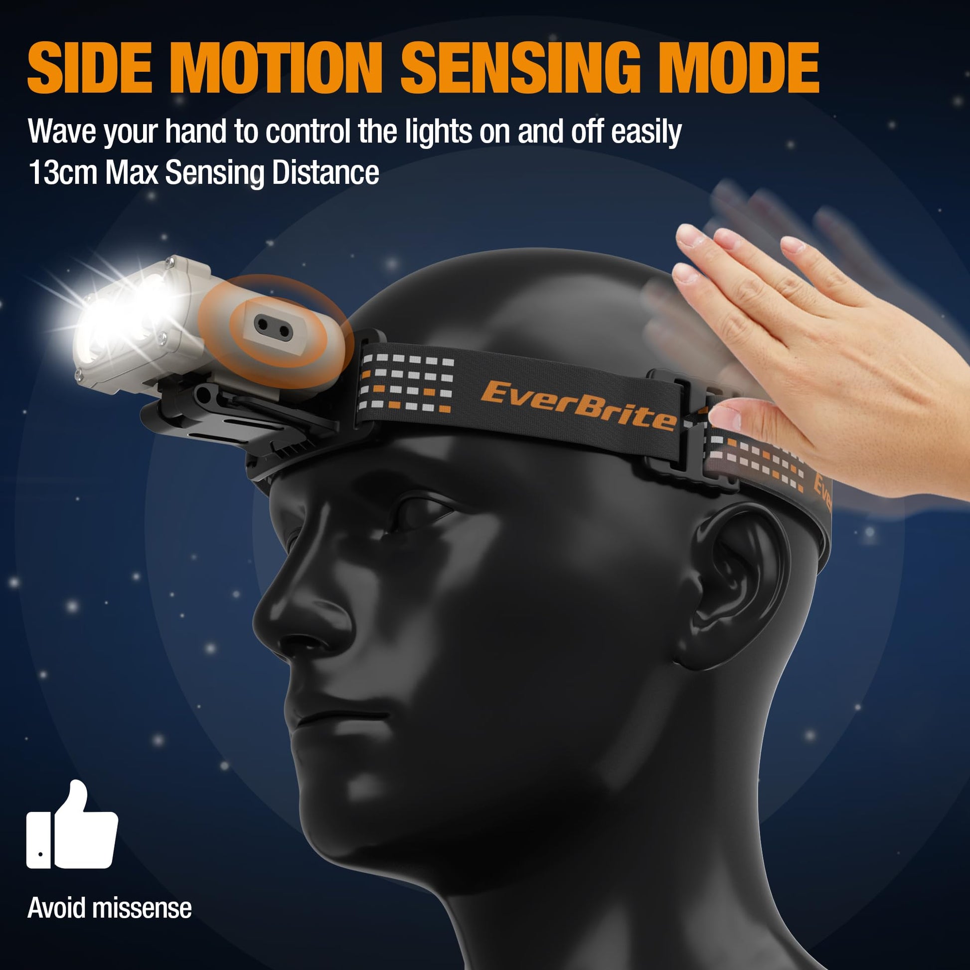EverBrite Hat Lights Clip On Rechargeable Headlamp with Motion Sensor, 3 Models LED 180° Adjustable Head Lamp to Wear and Clip for Hard Hats, Outdoor Headlight with Red Light for Running, Camping