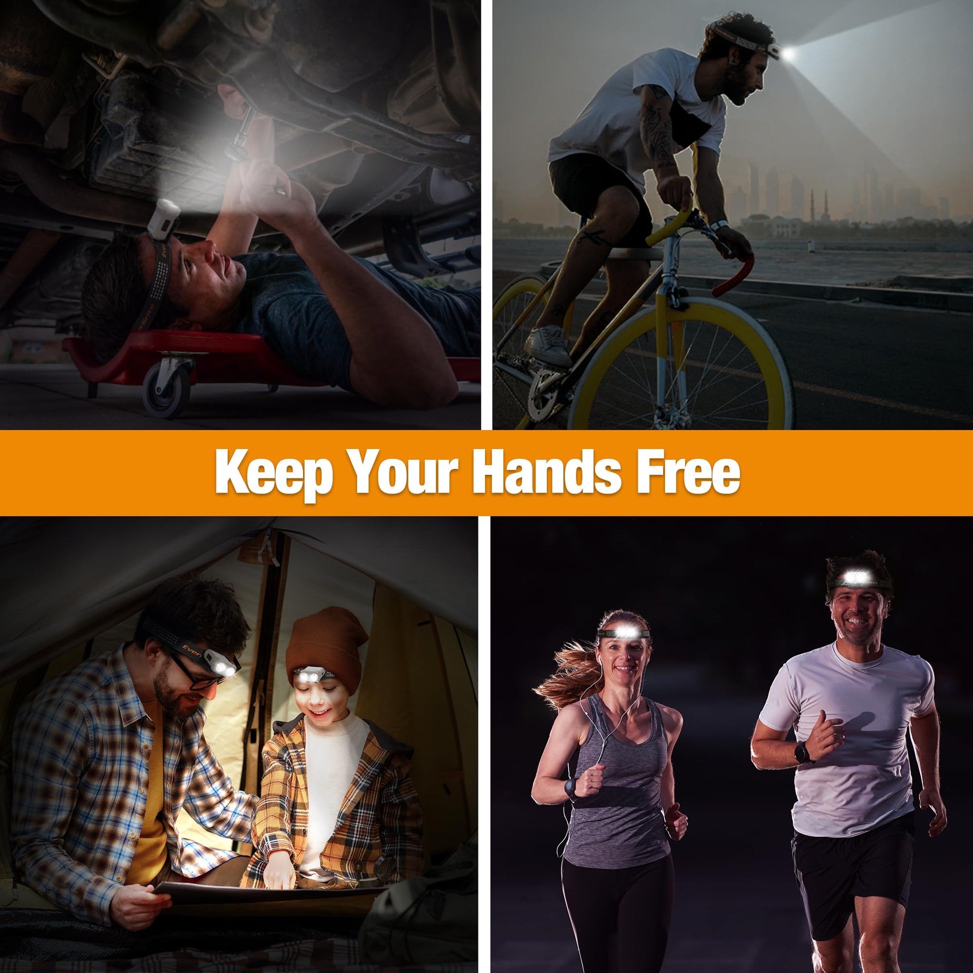 - MOTION DETECTION & RECHARGEABLE – The side motion sensor allows you to turn lamps off and on conveniently with a wave of your hand, avoiding miss sensing compared to the front sensor. This super-bright rechargeable running lamp contains a 1200mAh battery and can be fully charged in 2 hours, providing max 500 lumens brightness for 4.5 hours 460ft. No more buying batteries.