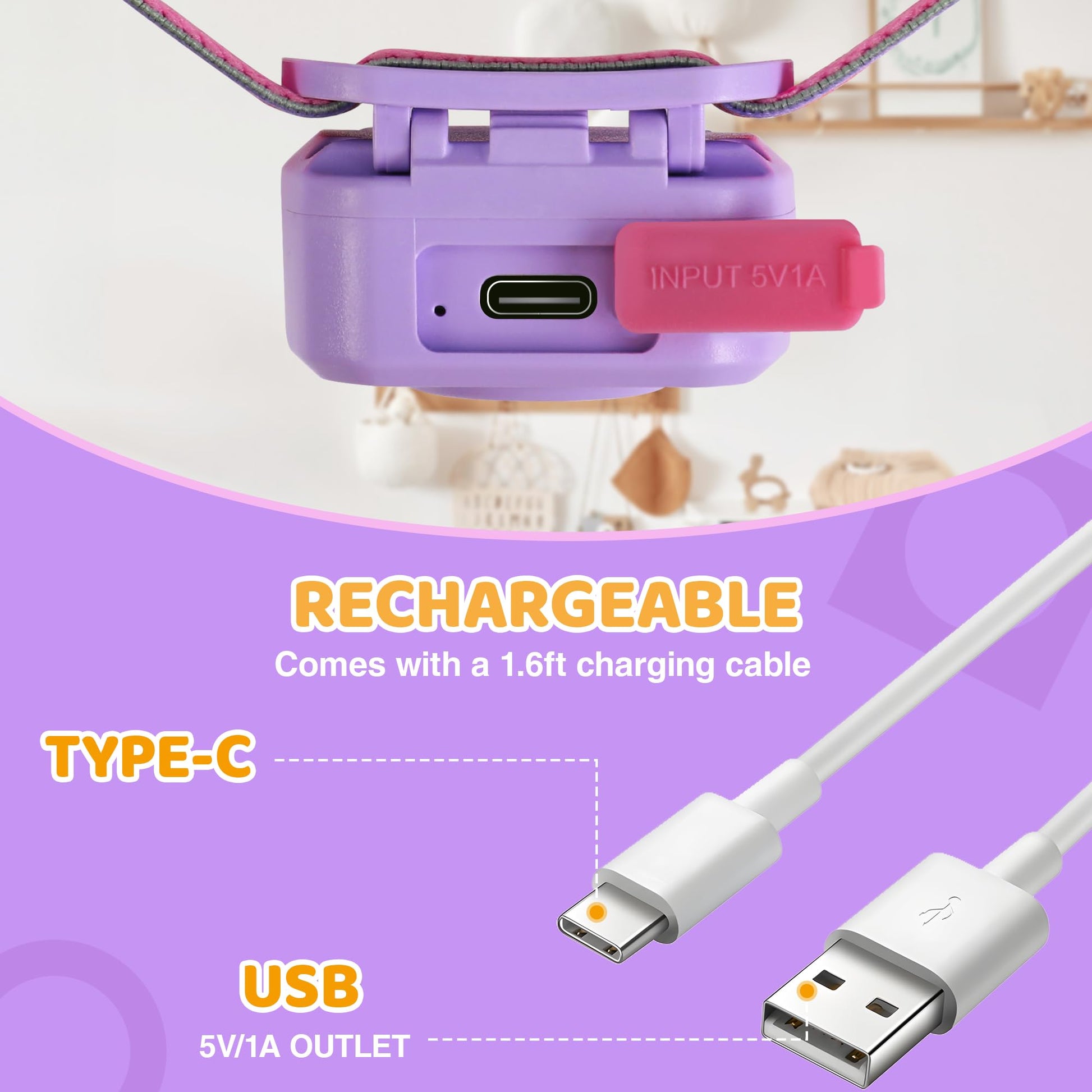- 3 Light Modes: Everbrite kids headlamp for boys& girls features 3 lighting modes: white low light, white high light( 50 lumens with a 33 FT range), and RGB cyclic color change. The gentle white light is perfect for kids' eyes, ensuring a comfortable and safe experience. Tip: 3 modes need to be switched by button
