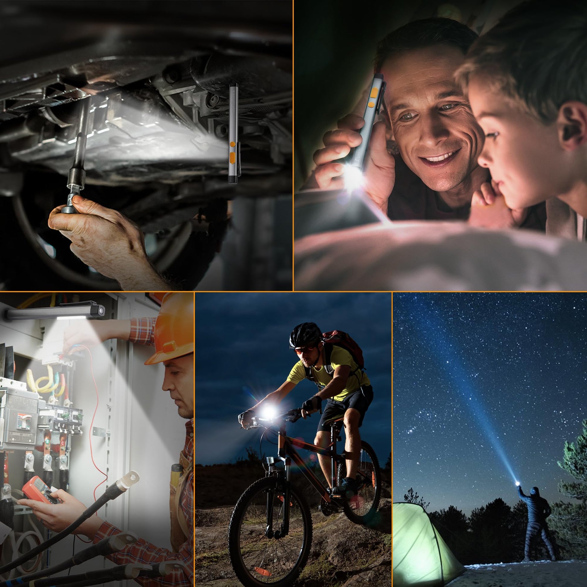 - Lightweight & Pocket Clip: This penlight size only 6.5 inches long, 1.8 ounces, and with a friendly metal clip, which can be easily attached to your belt, bag, shirt, or pants pocket. This compact flashlight in pocket size is the perfect choice for your camping flashlight