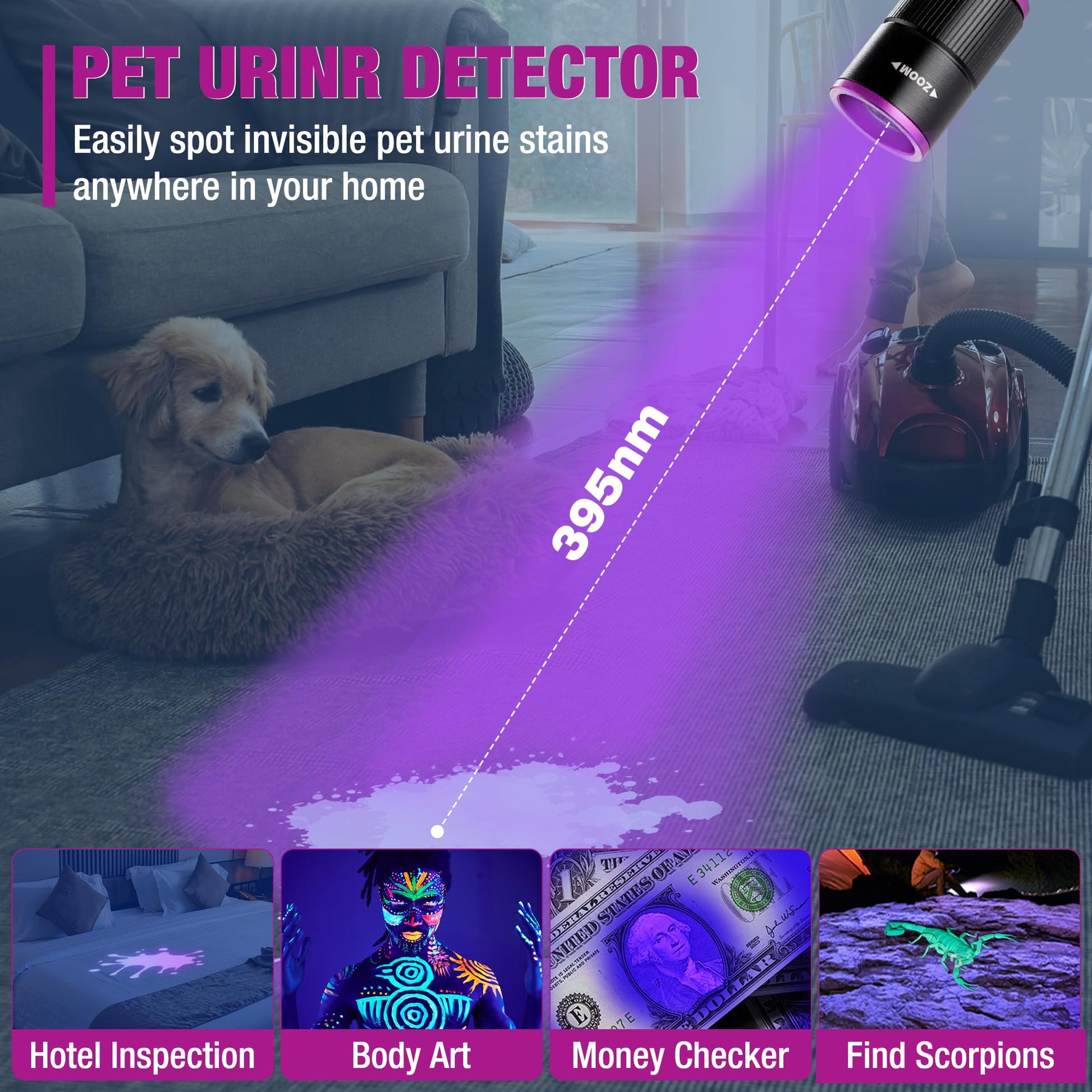 - 2-in-1 Functionality: Combines white and black light functions in one, this flashlight can meet almost any of your home and outdoor use needs. When you want to use the UV light function, there is no need to buy an additional flashlight anymore, just press the power button to switch