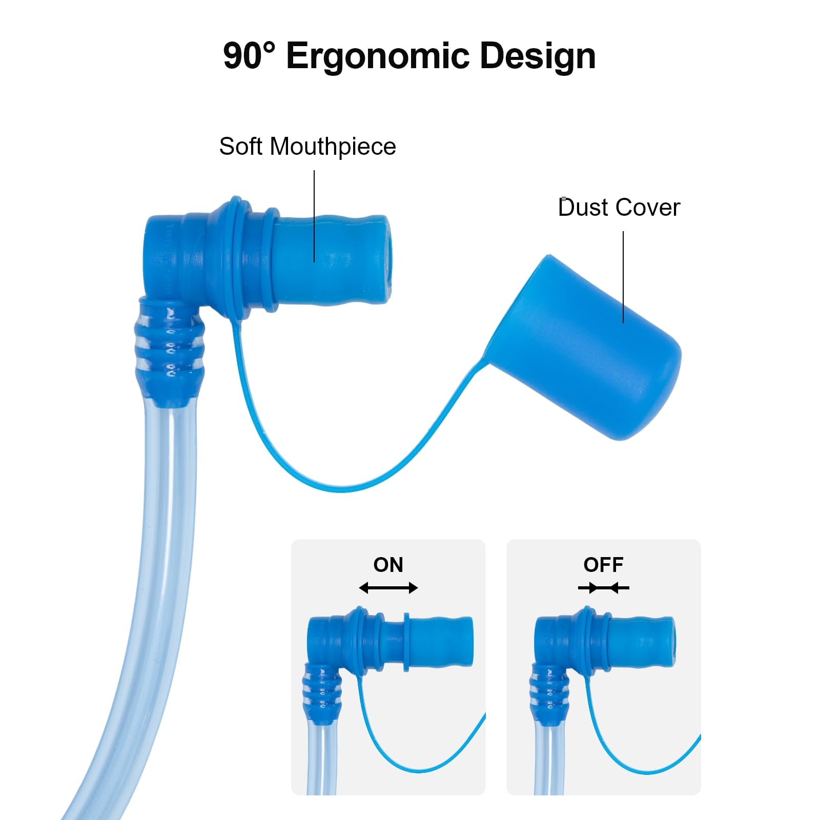 - Comfortable Drinking - This water bladder features a high flow ergonomic 90° angle bite valve design that is easy to operate and provides a comfortable drinking experience. The design also includes a dust cover for extra hygiene, keeping the bite valve clean and free from dirt during outdoor activities. This design is tailored to the user's needs, aiming to deliver a more convenient and hygienic drinking experience.