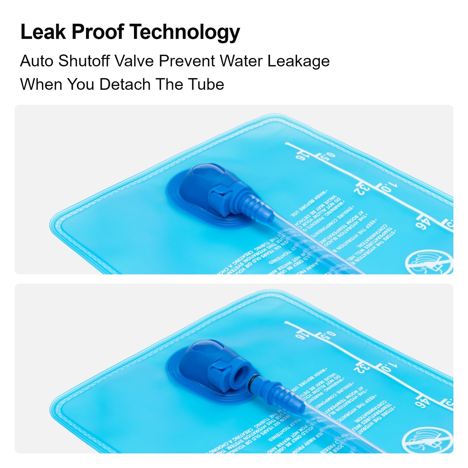- HANDS FREE DRINKING -- The Hydration pack comes with an Upgraded 3-Liter water bladder & bilateral hose outlets designed to free your hands. The 3-Liter water bladder has a Large Opening for easy adding water, adding ice cube and cleaning. Ergonomic 90° angle bite valve for more comfortable use. The mouthpiece cover protects the bite valve against dirt and damage. A separate insulated bladder compartment for 6 Hours' Cooling(with ice packs) .