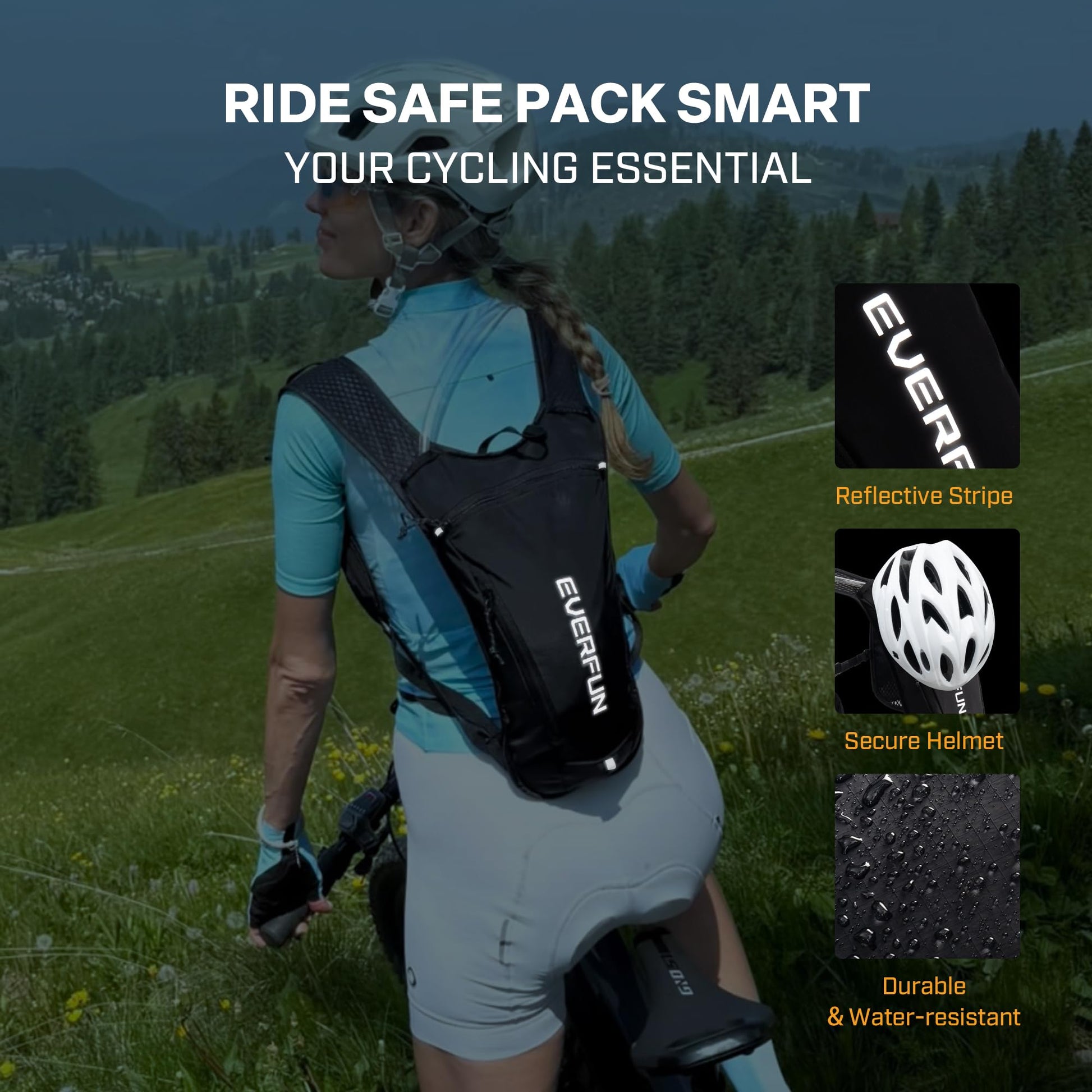 EVERFUN Hydration Backpack Running Vest Small Hiking Water Backpack with 1.5L Water Bladder for Women Men, Lightweight Reflective Dayhike Hydro Pack for Trail Running, Biking, Race, Marathons, Black