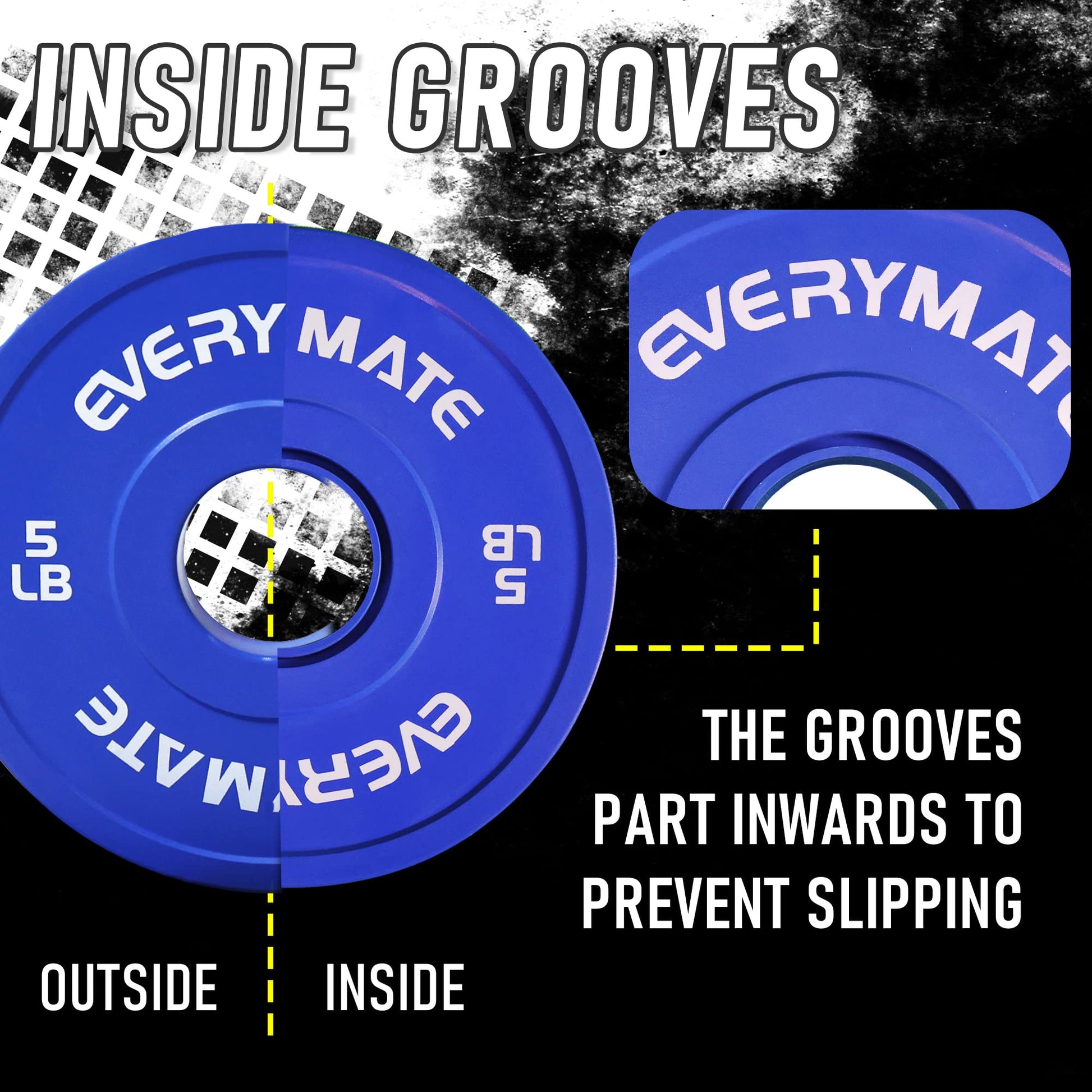 EVERYMATE Change Plates 1.25LB 2.5LB 5LB 10LB Set - Fractional Olympic Bumper Plates for Cross Training - Steel Insert Strength Training Weight Plates