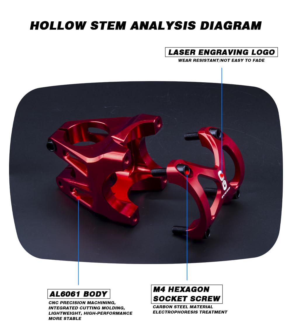- Suitable: For downhill and off-road.BIkeshort stem is more conducive to the control of the bike, so that the bike steering is more flexible, and the short stem with the long handlebar,will safer and more stable at high speed.
