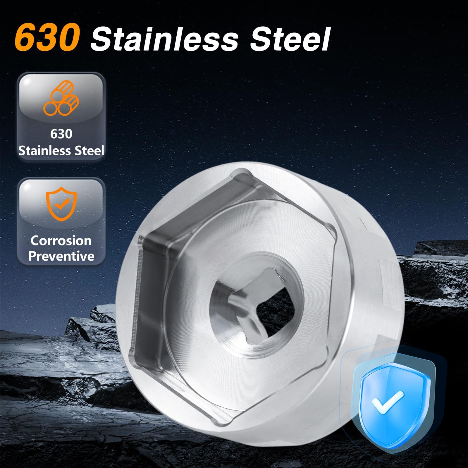 - 【630 Stainless Steel Material】:This front fork caps socket tool is made of high-quality 630 stainless steel, processed by CNC, with precise dimensions and excellent durability. Its heat-treated surface ensures resistance to rust, corrosion, and wear, ensuring long-term performance.