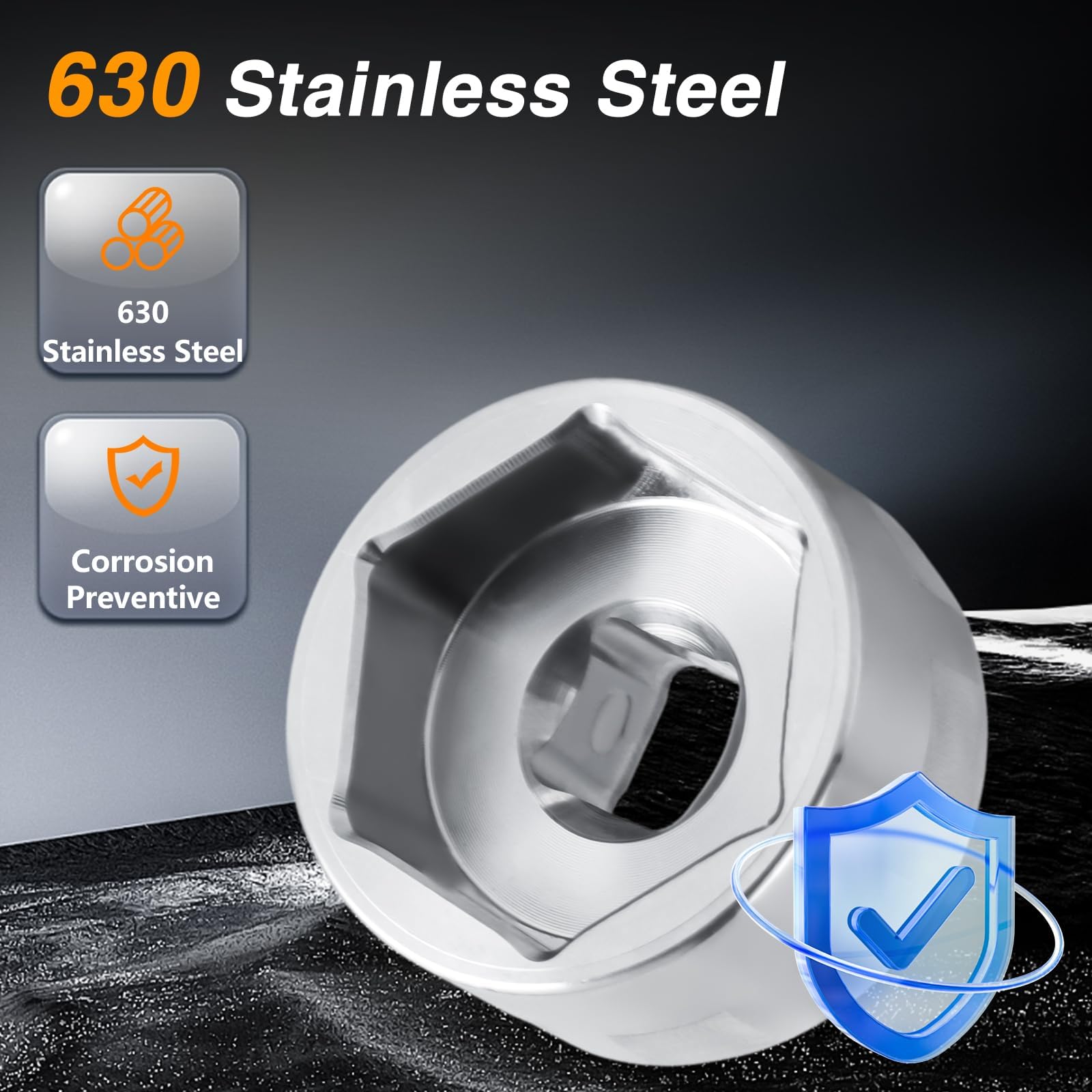 - 【630 Stainless Steel Material】:This fork topcap socket tool is made of high-quality 630 stainless steel, processed by CNC, with precise dimensions and excellent durability. Its heat-treated surface ensures resistance to rust, corrosion, and wear, ensuring long-term performance.
