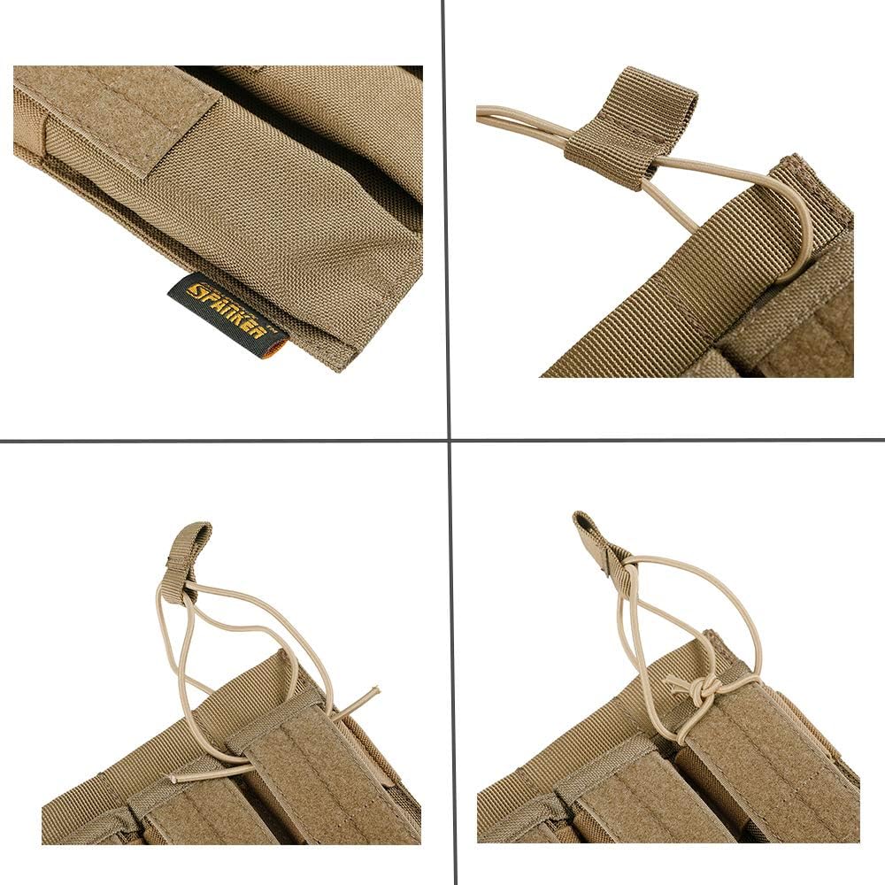- Dual-use Design:MP5 magazine pouches can be used for magic sticker or elastic band to keep fixed magazine as you like.The mag pouch can be used as an open top single/double/triple mag pouch, or you can use the elastic strap to fix the magazines in place.