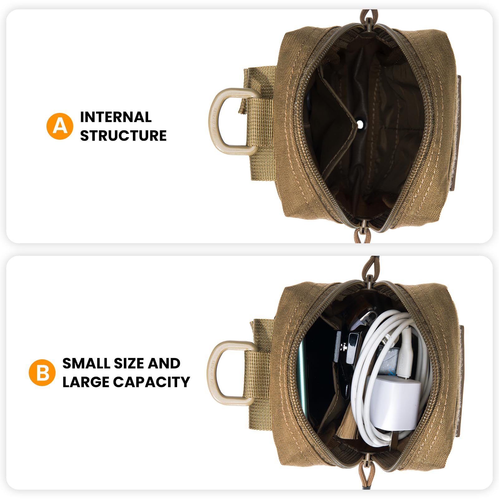 - TYPICAL MOLLE SYSTEM: Tactical molle pouch with Molle back straps can be attached to tactical backpack, tactical vest,battle belt, or other molle gears as an extra exterior pouch,like small EDC pouch, tactical molle bag, ifak pouch, tactical vest pouch, small tactical bag, military pouch, army pouch, gadget pouch, cellphone waist bag ,utility belt pouch.