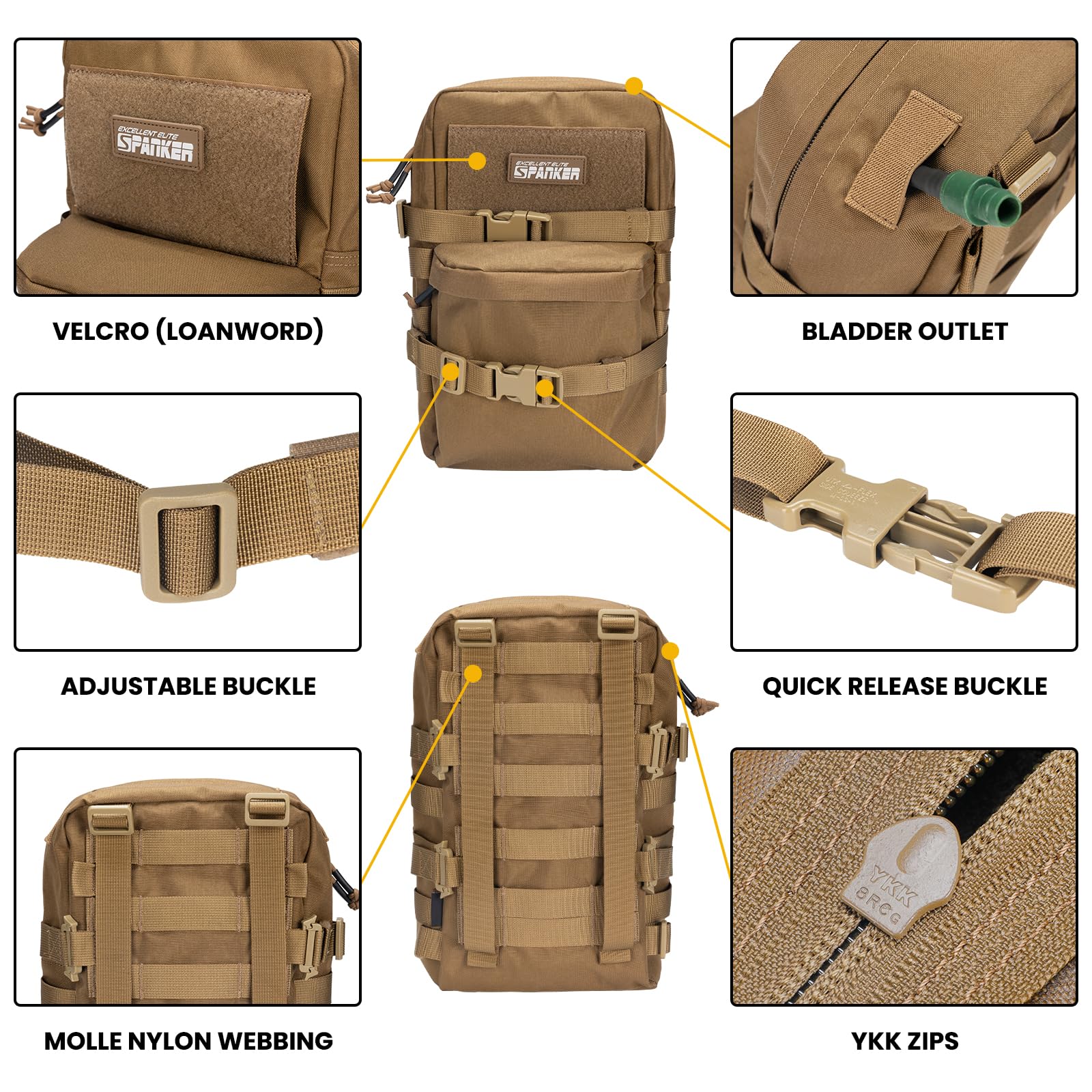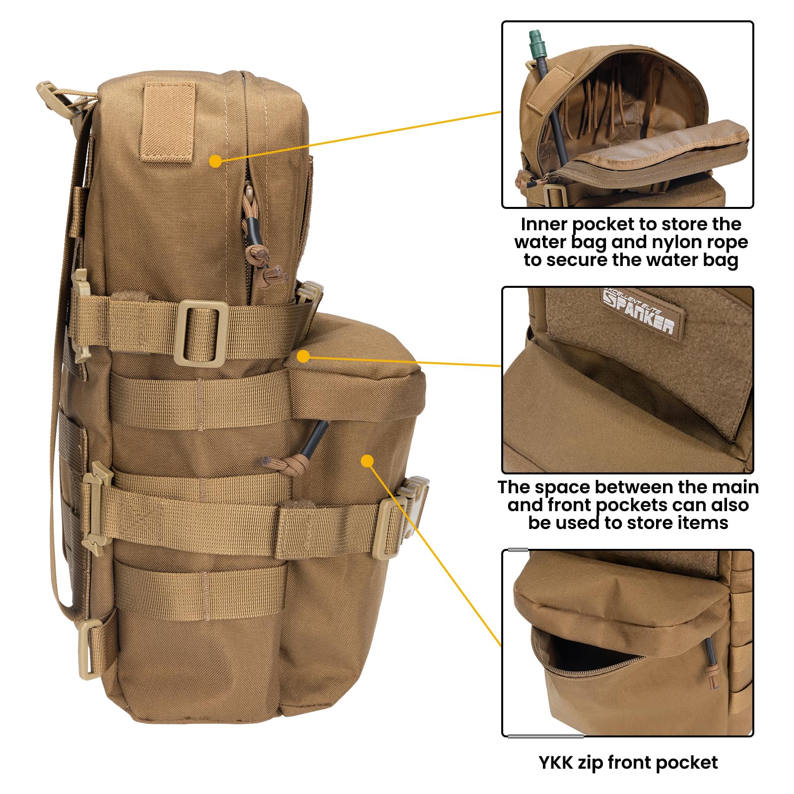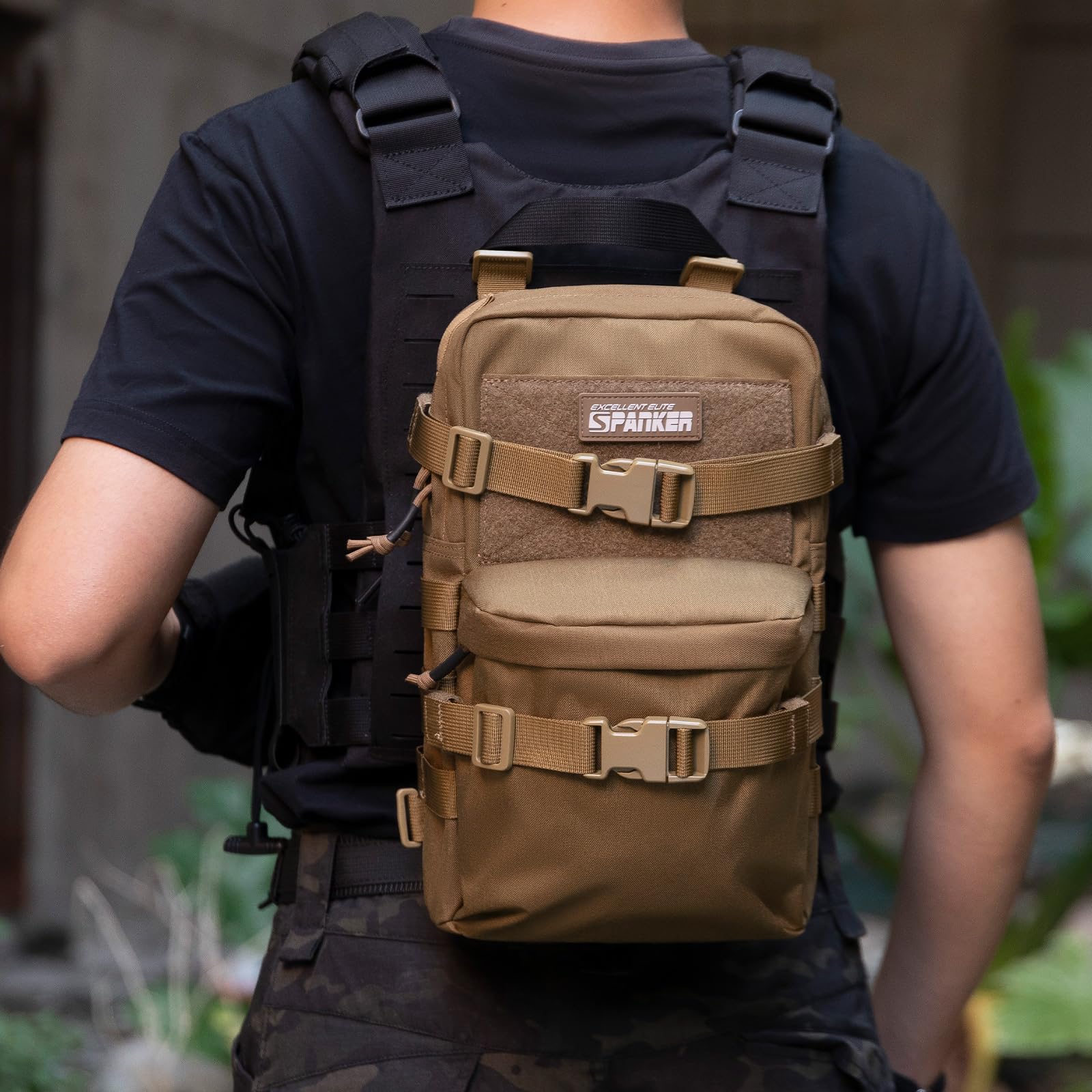EXCELLENT ELITE SPANKER Tactical Small MOLLE Hydration Pack Water Bladder Carrier Pack for Tactical Vest Backpack Plate Carrier (Coyote Brown-Nylon)