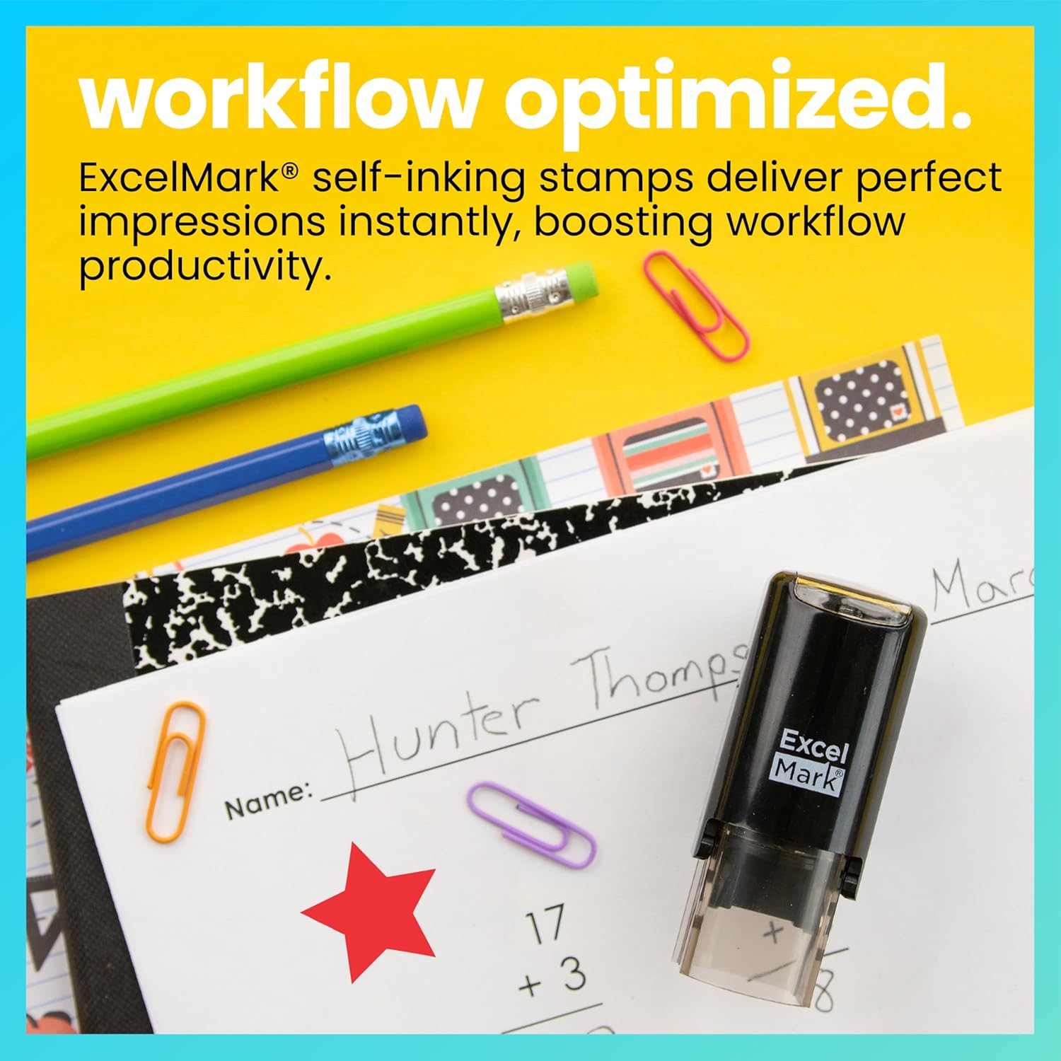 ExcelMark Round Teacher Stamp - Solid Star - RED Ink