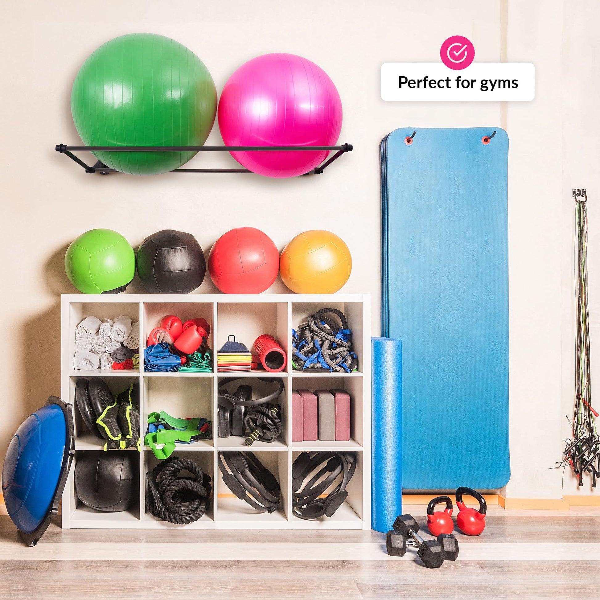 - 【MAXIMIZE YOUR SPACE】Make the most of your workout routine with the yoga ball holder. Made with high-quality materials, our rack is built to last. Your exercise balls will stay securely in place while not in use. Perfect for home gyms, personal training studios, and physical therapy clinics.