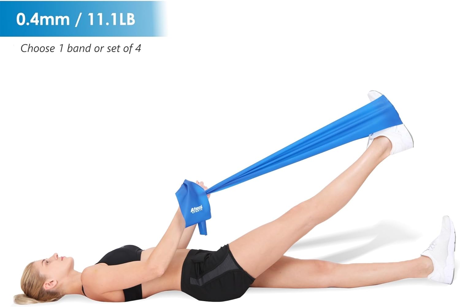 - LONG RESISTANCE BANDS – each order includes either a single band or a set of 4, in lengths of either 4ft or 7ft (make your selection under “Color” and “Size”). Each order includes a workout guide. The stretch bands are available in four levels of resistance: #1 Yellow (Light / 6.8LB); #2 Red (Medium / 8.9LB); #3 Blue (Heavy / 11.1LB); #4 Black (X-Heavy / 16LB)