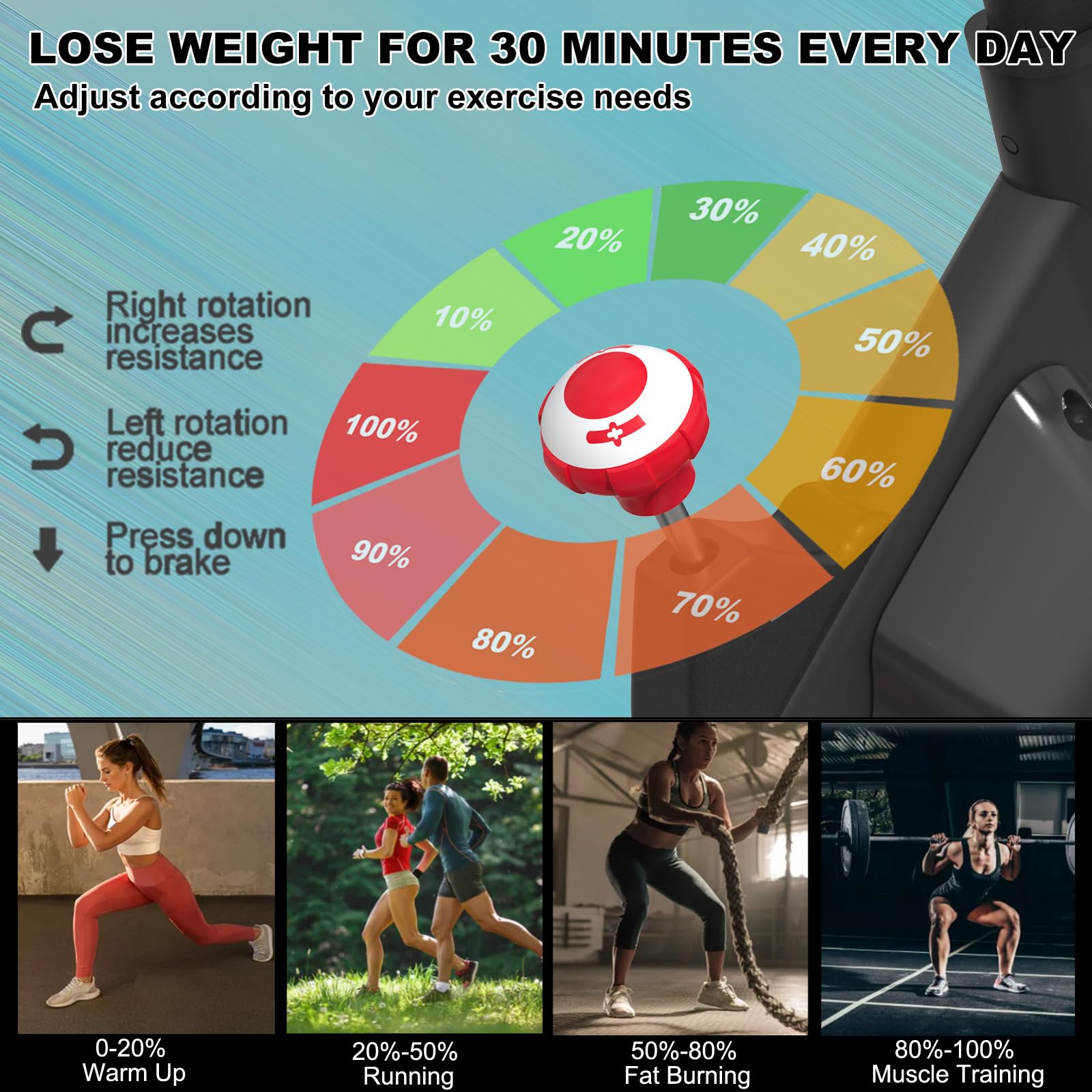 - 【SMOOTH STATIONARY BIKE】Configuring different resistance levels can bring you a realistic road feel. Different resistance levels can meet your different needs for exercise thus burning more calories. And the built-in push-down emergency brake can protect your safety in dangerous situations.Easy and quick to set up and take down, with an extremely space-saving design .Easily moveable with the front-mounted transport wheels of the spin bike.